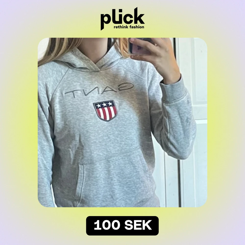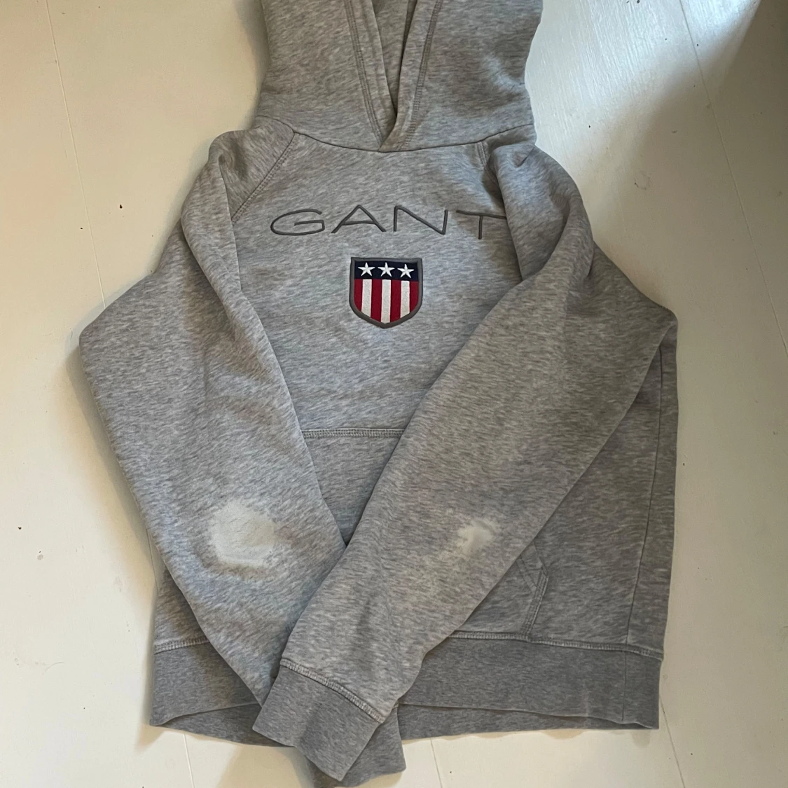 Ljusgrå Hoodie från GANT, strl 152 motsvarar XXS. Är lite sliten vid armbågar.