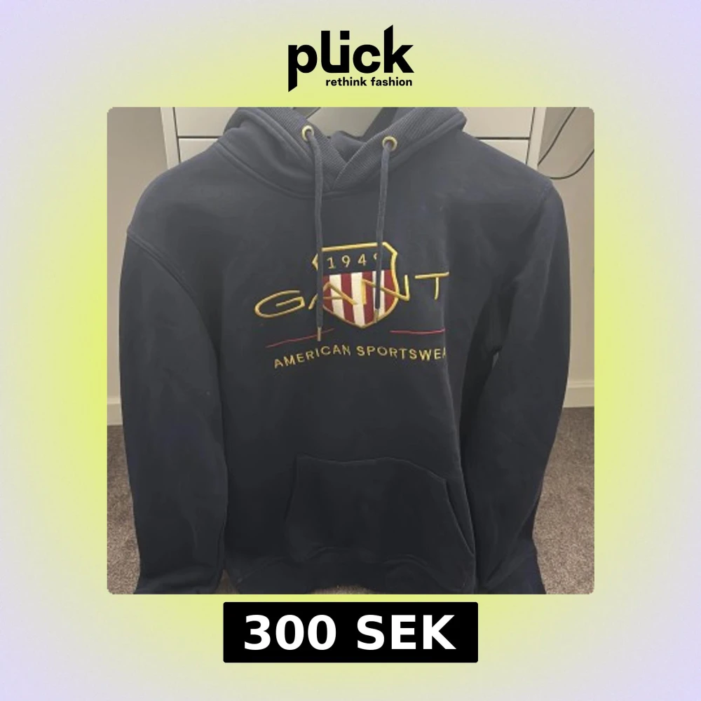 Säljer en snygg mörkblå hoodie från GANT med ett stort tryck på framsidan. ❤️