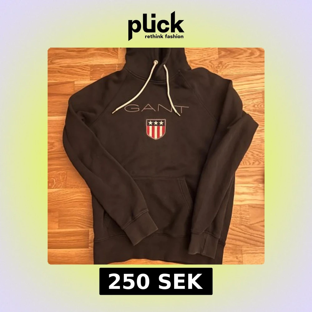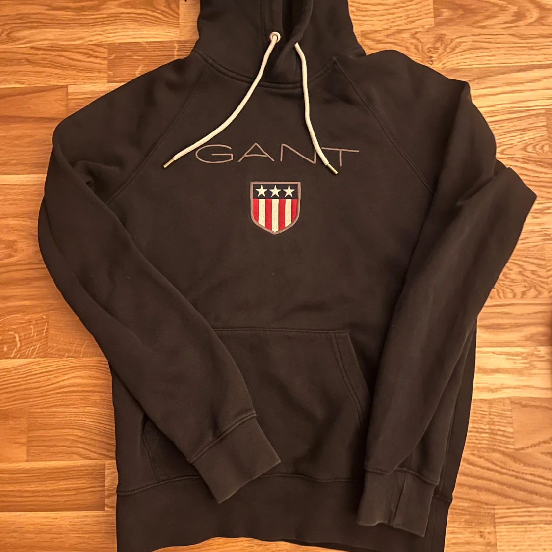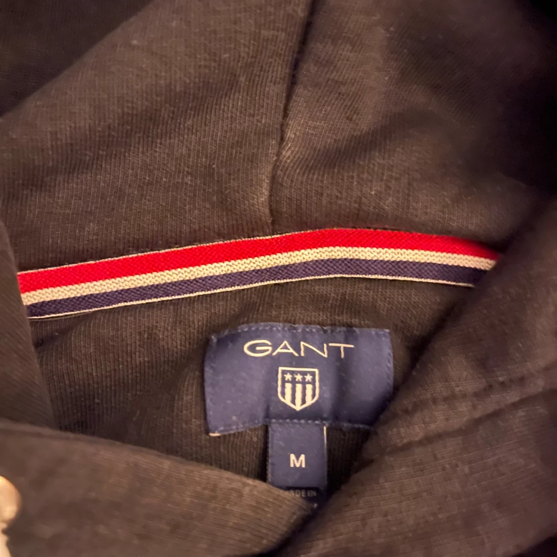 Svart från GANT med broderad logga och sköld på bröstet. Hoodien är i storlek M🤩🙌