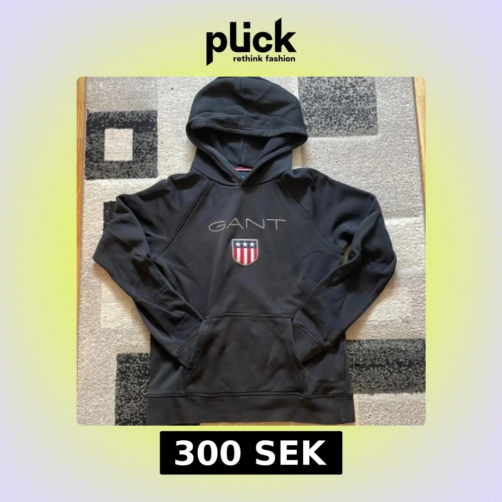 Svart hoodie från GANT med broderad logga och sköld på bröstet. Klassisk huva, känguruficka och långa ärmar. Snygg och enkel design som passar perfekt till jeans eller joggers. Materialet är mjukt och bekvämt, troligen bomullsmix. Storlek S-M
