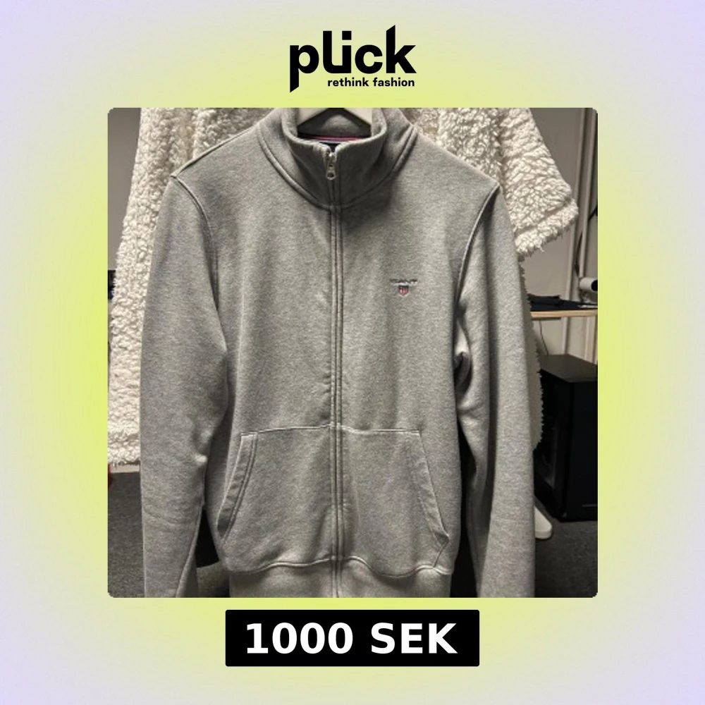 Säljer en stilren grå ziptröja från GANT med hög krage och två praktiska fickor framtill. Tröjan har ett litet broderat GANT-emblem på bröstet och är tillverkad i mjuk bomull. KNAPPT ANVÄND!