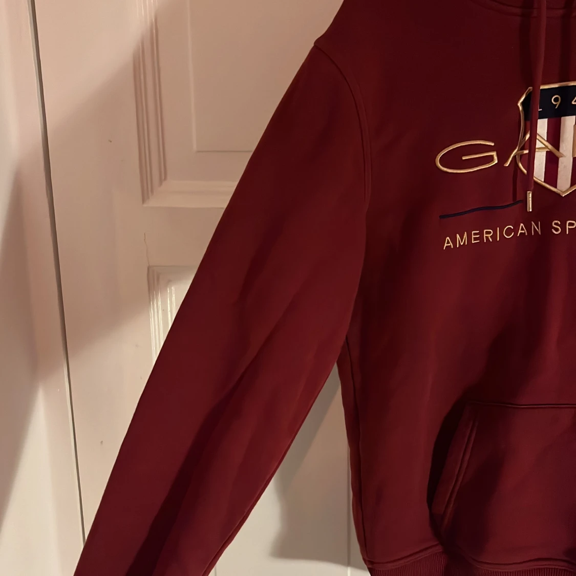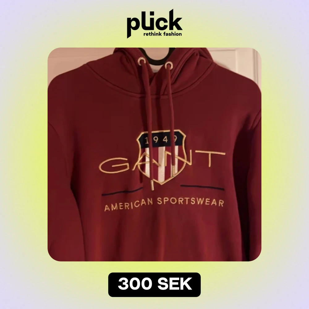 En vinröd GANT hoodie i storlek S. Nästan aldrig använd, skick 9/10. Nypris 1400kr, säljer för endast 300kr