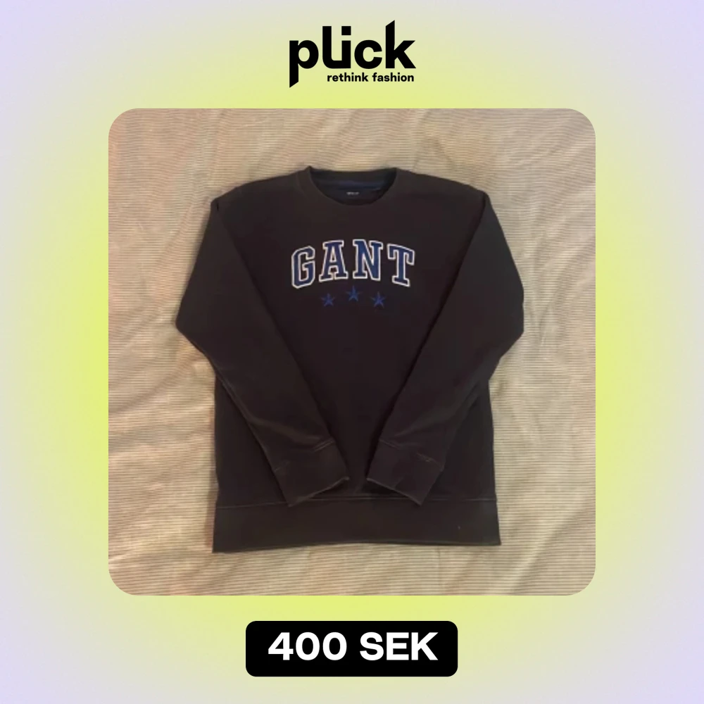 Marinblå Gant sweatshirt. Ser ut som svart på bilden men i verkligheten är den en jättefin marinblå färg, vilket man ser på andra bilden där jag lagt ett svart plagg brevid. Inga defekter förekommer. Storlek 146/152. Köpare står för frakt