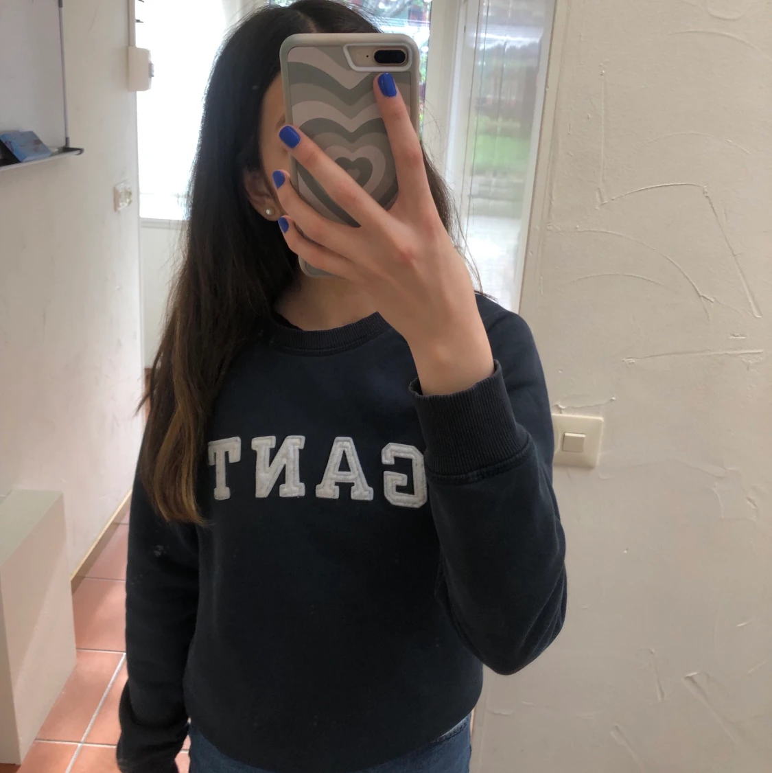FÖRSTA BILDEN ÄR LÅNAD! marinblå gant tröja i storlek s. den är lite urtvättad och texten har små noppor. nypris ca 1300kr💕💕