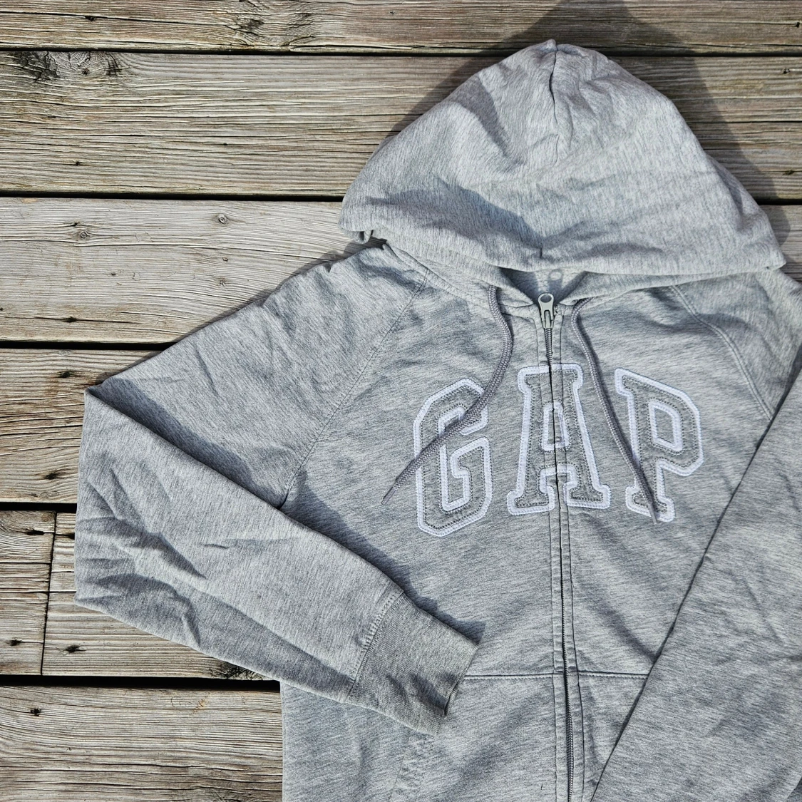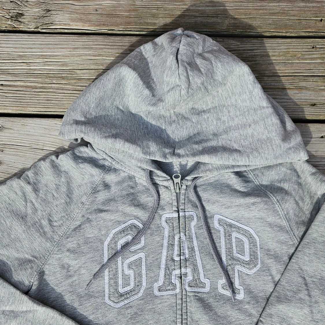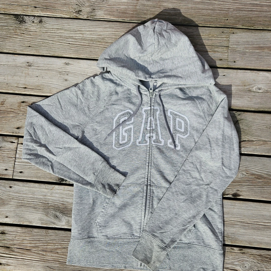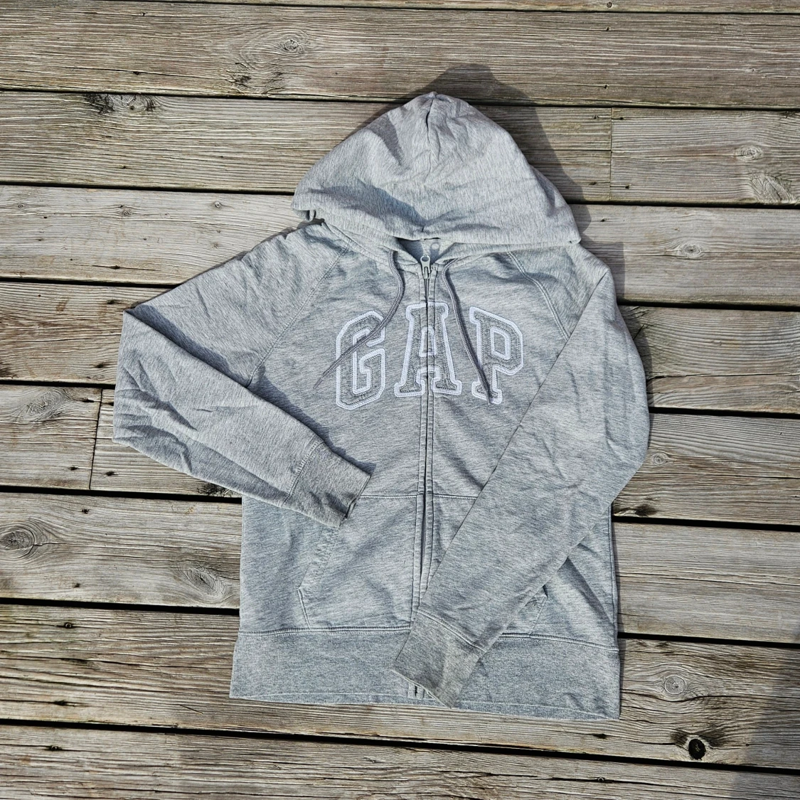 En grå gap zip hoodie i storlek XS, använd några gånger men fortfarande i fint skick!