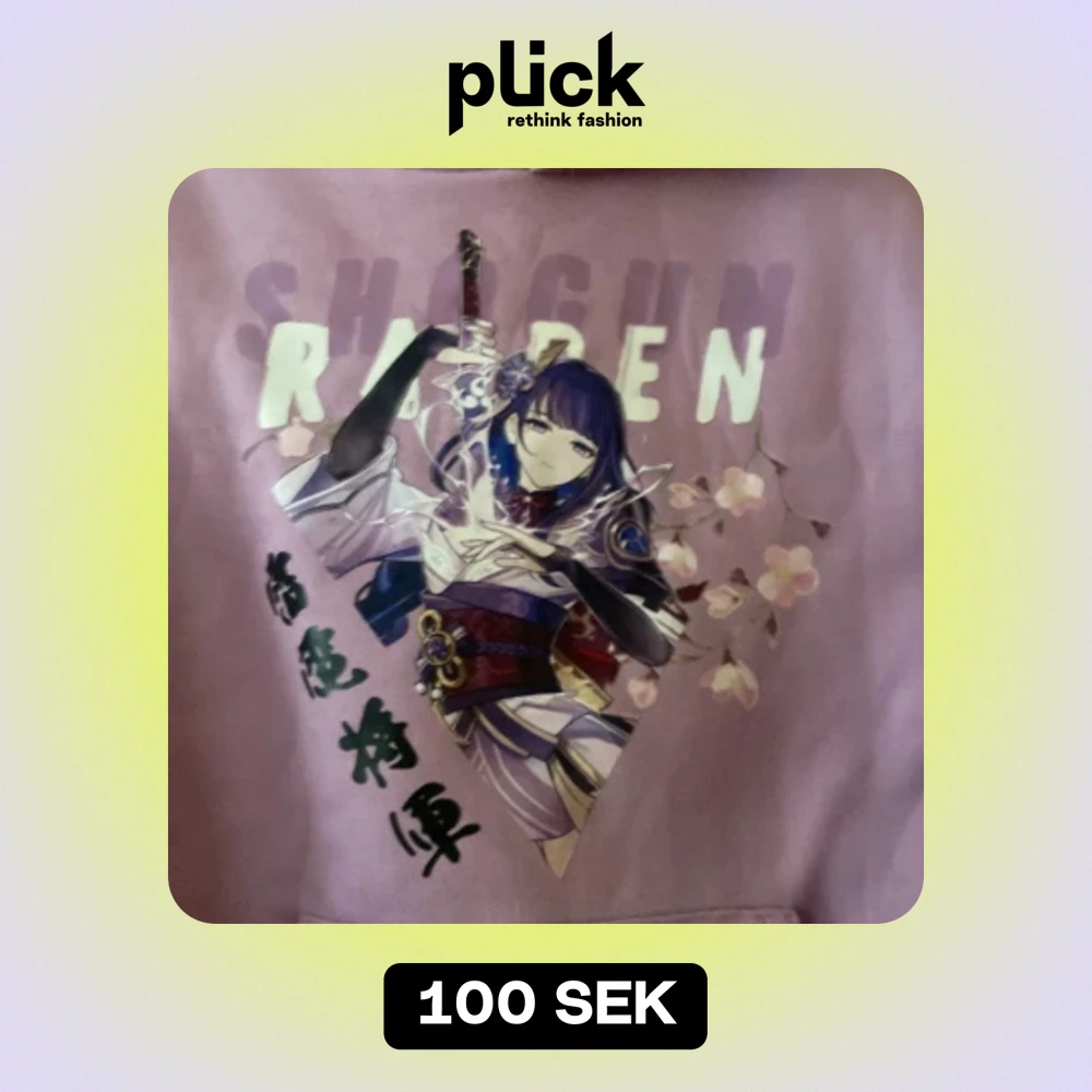 En skön Genshin impact hoodie med raiden shogun tryck på! Den har ett skönt material på insidan och har inte blivit använd någon gång men den har en liten vit fläck som inte är så synlig och den är köpt på lightinthebox websida för ca två år sedan!🌸