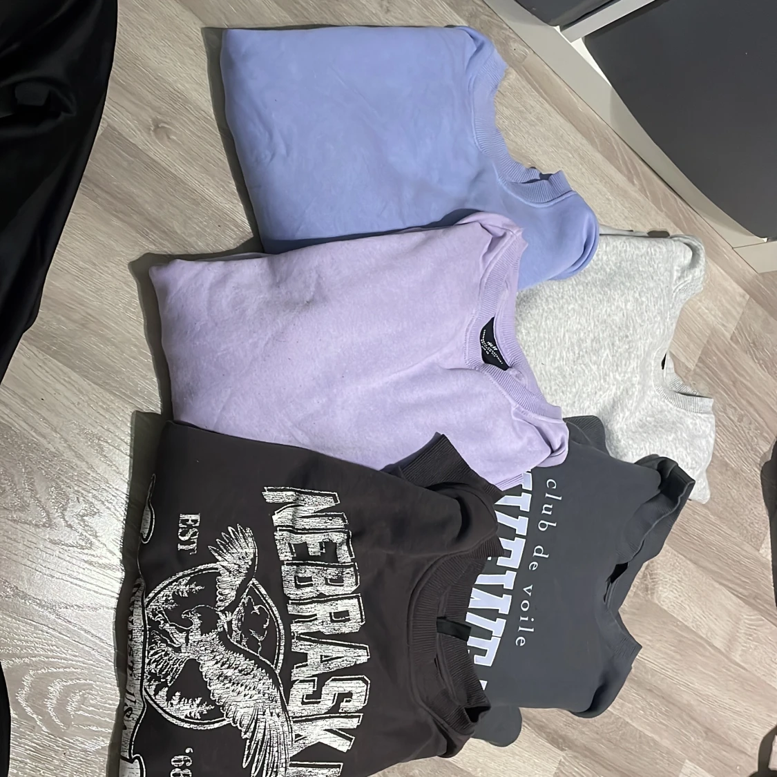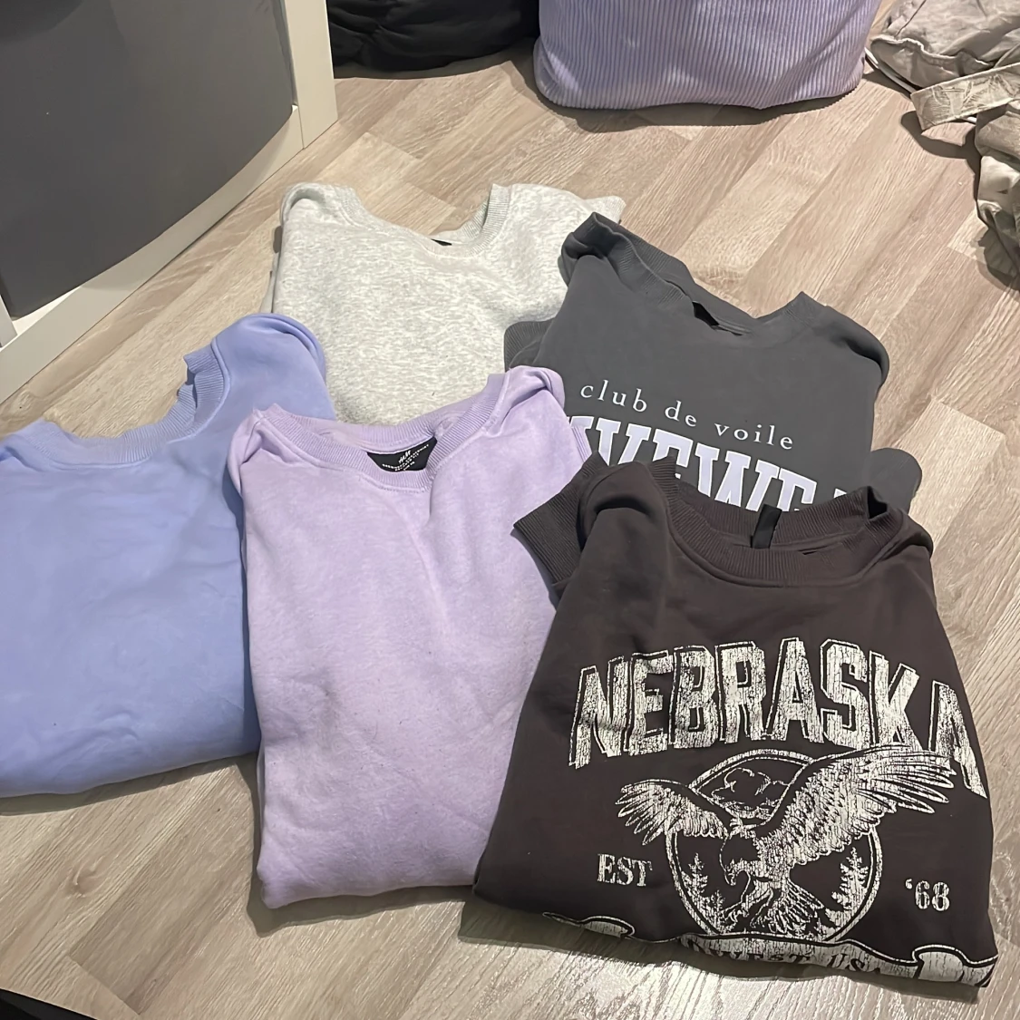 Tjocktröjor i olika storlekar, L i de mörkgråa med tryck, XS i ljusgrå och ljuslila. Den blåa/lila är i S. Separat säljs de för 75kr. Tillsammans kostar alla 5- 250kr Fint skick på alla, vill fler bilder has så är det bara att fråga🥰