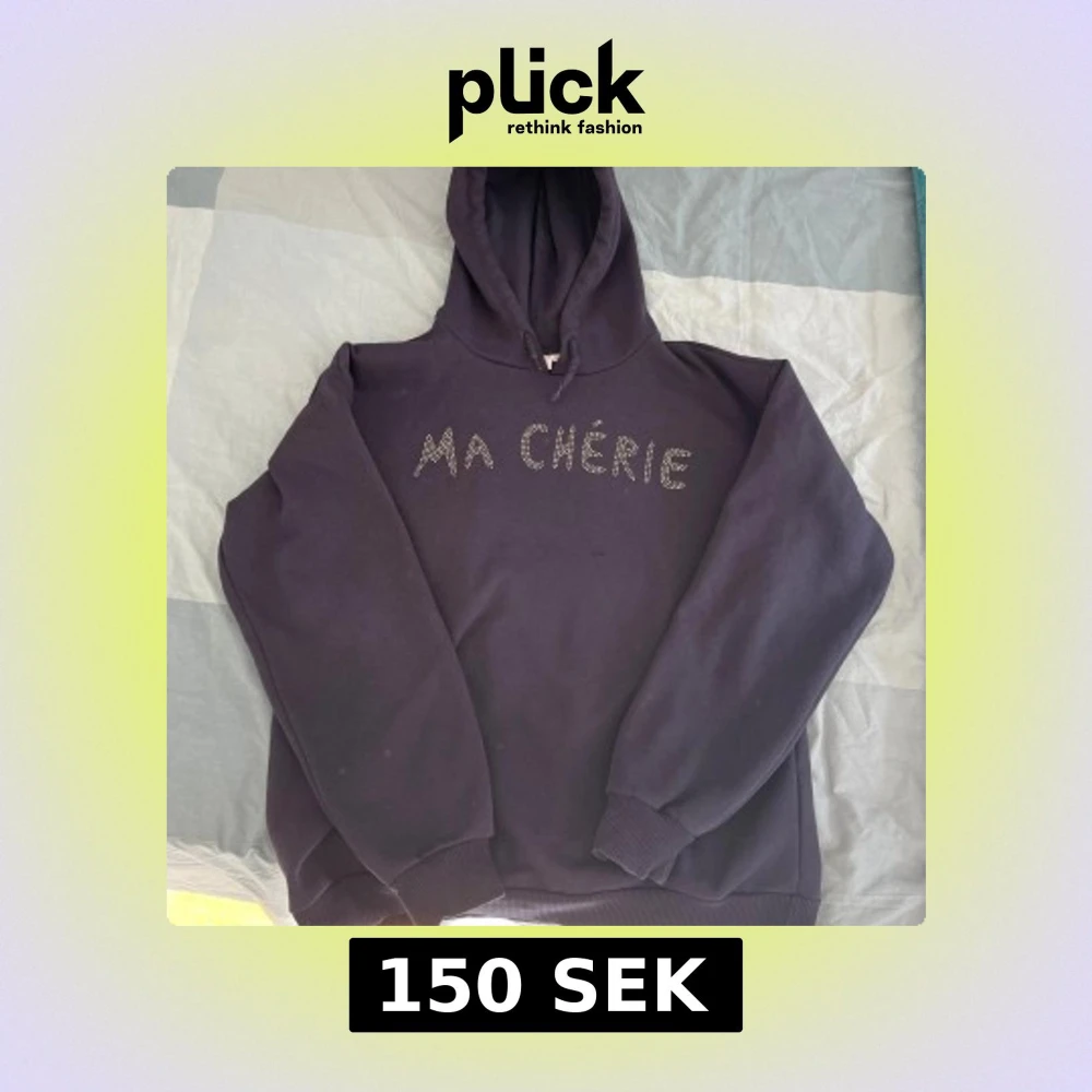 Säljer en mörkblå hoodie från Gina Young med texten ”ma Chérie”. Super bra basplagg och jätte mjuk inuti! Skriv för fler bilder eller frågor. Säljer då jag fick en ny liknanade! Storlek 146/152 men stor i storleken så passar typ xs! ❤️