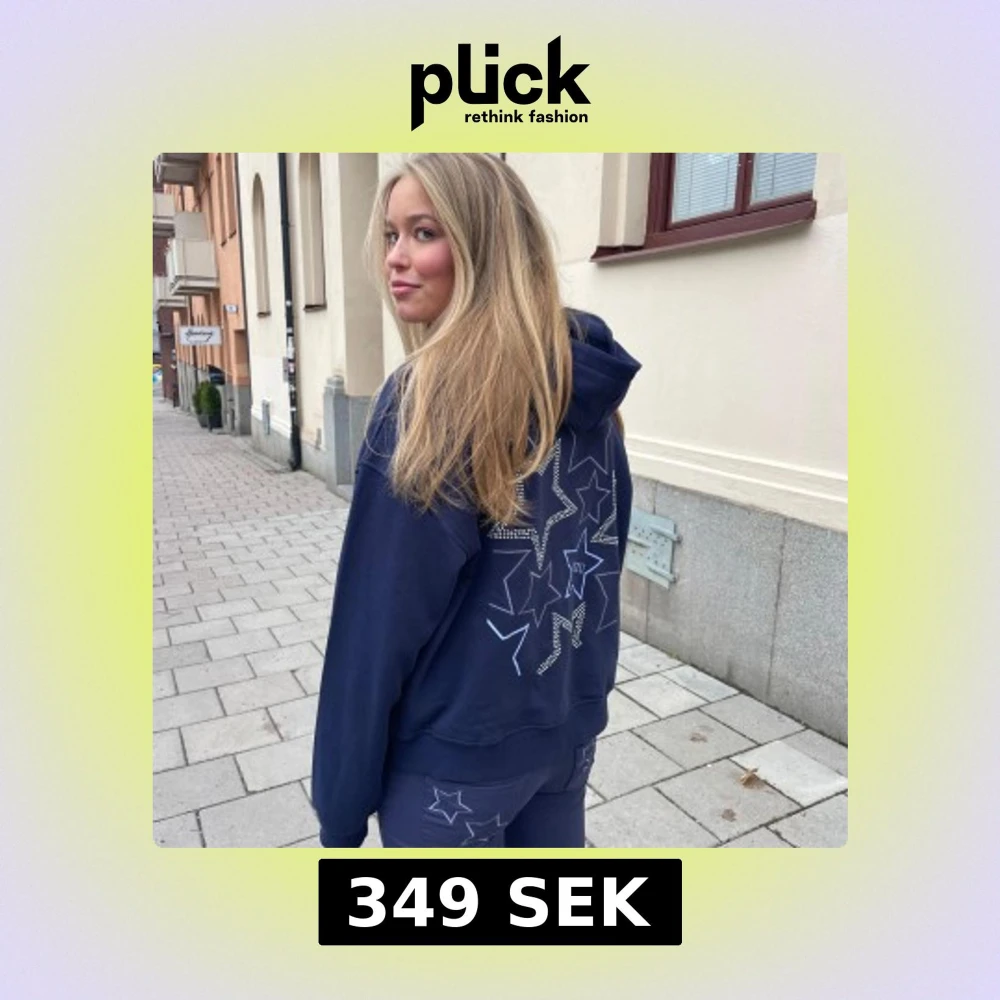 Jättesnygg mörkblå hoodie med rhinestones och tryck på ryggen! Helt ny! Limited edition.