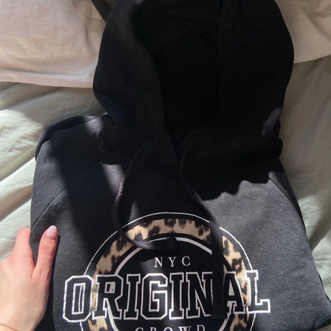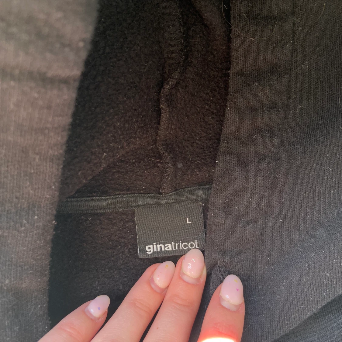 En jättefin croppad hoodie från GinaTricot! Tryck på framsidan och oversized passform på mig då storleken är L🤎
