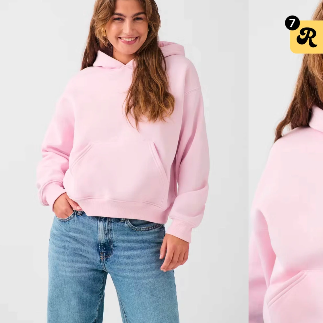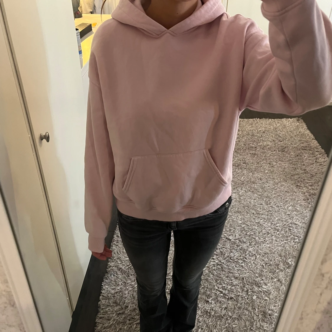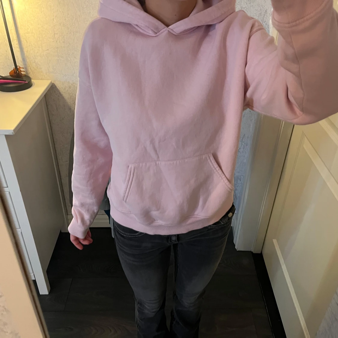 Säljer en mysig rosa hoodie från Gina i storlek xs. I skick 7/10💕