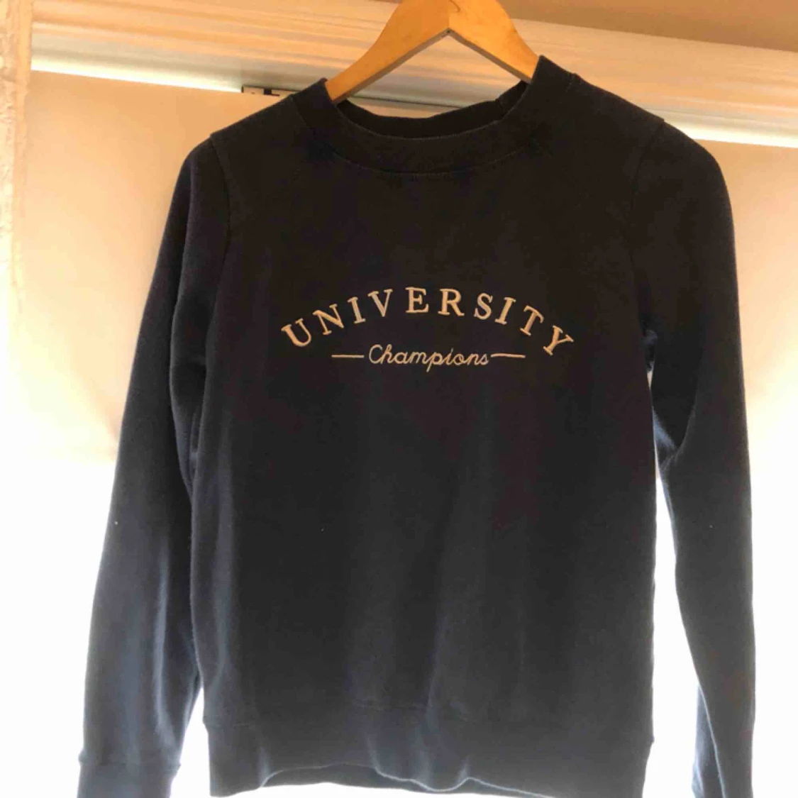 Jättesnygg mörkblå sweatshirt med vitt tryck fram, använd ett par gånger men i bra skick