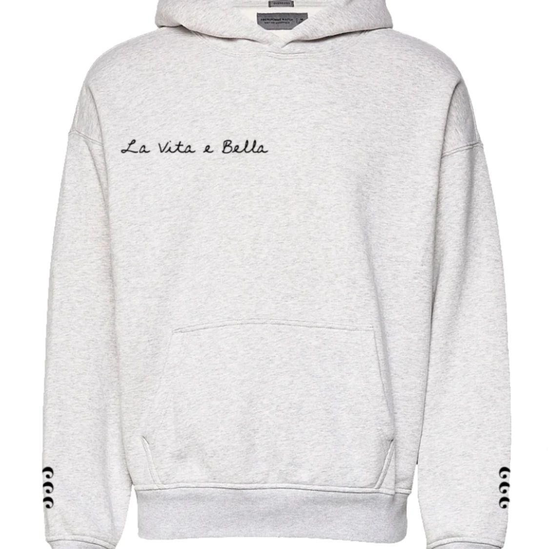 Grå hoodie med broderade svarta detaljer. Från mitt eget märke! PRESALE!