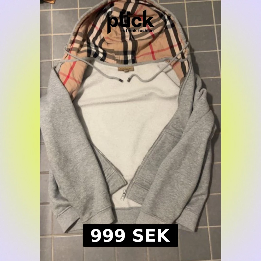 Snygg grå hoodie från Burberry i storlek M. Klassisk dragkedja framtill, två fickor och huva med ikoniskt Burberry-rutigt foder. Mjuk bomullsblandning och ribbade muddar. Perfekt för en chill och stilren look. Passar både kvinnor och män men passar bäst för en man! obs* två små hål vid fickorna men inget man riktigt tänker på dom hålen är lätta o sy med några stygn 🧵🤩bara att slänga frågor om hoodien eller om ni vill se mer av den (bara instabox)