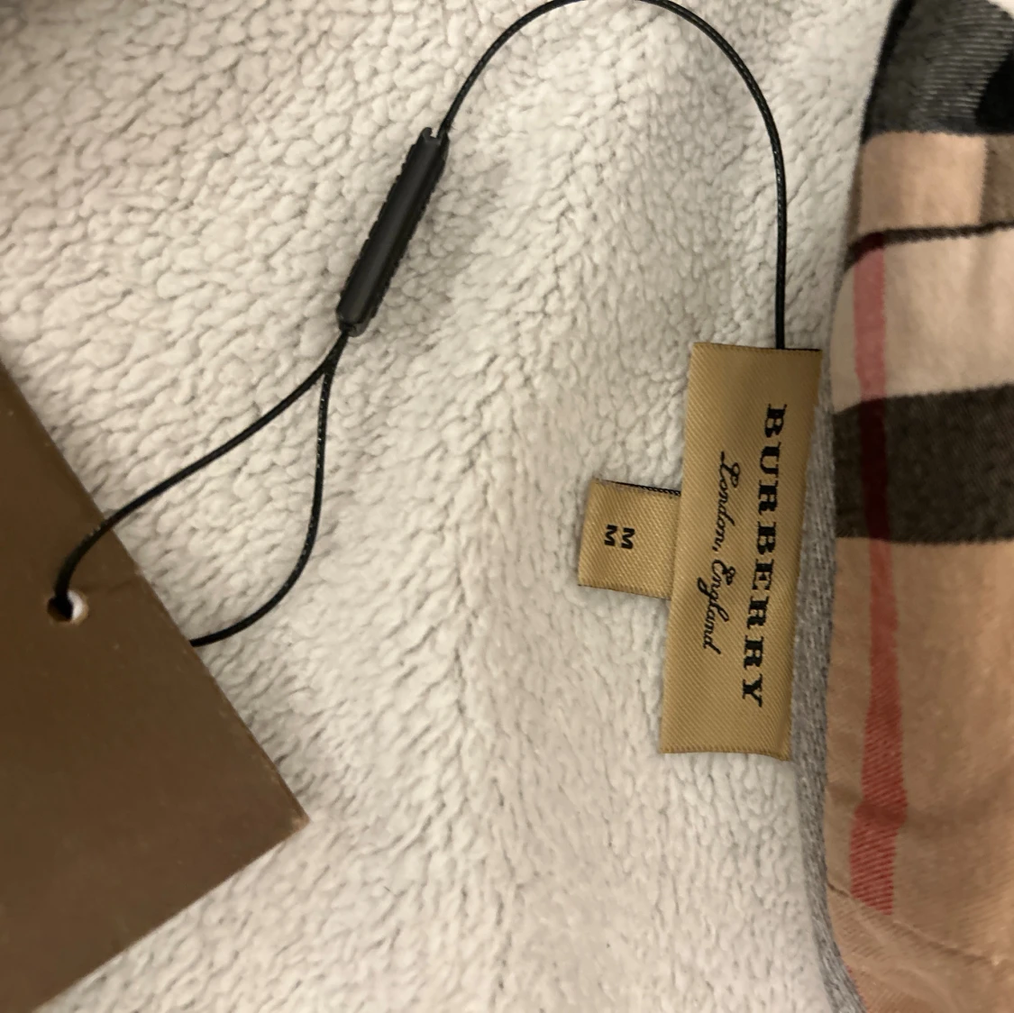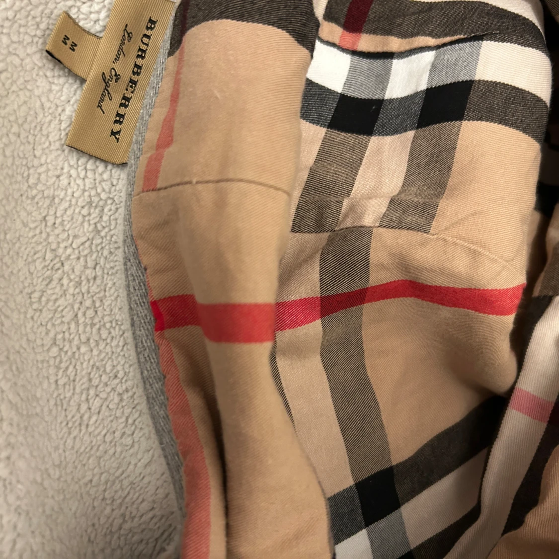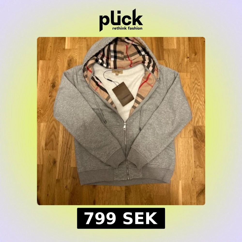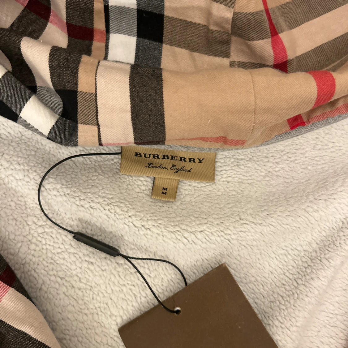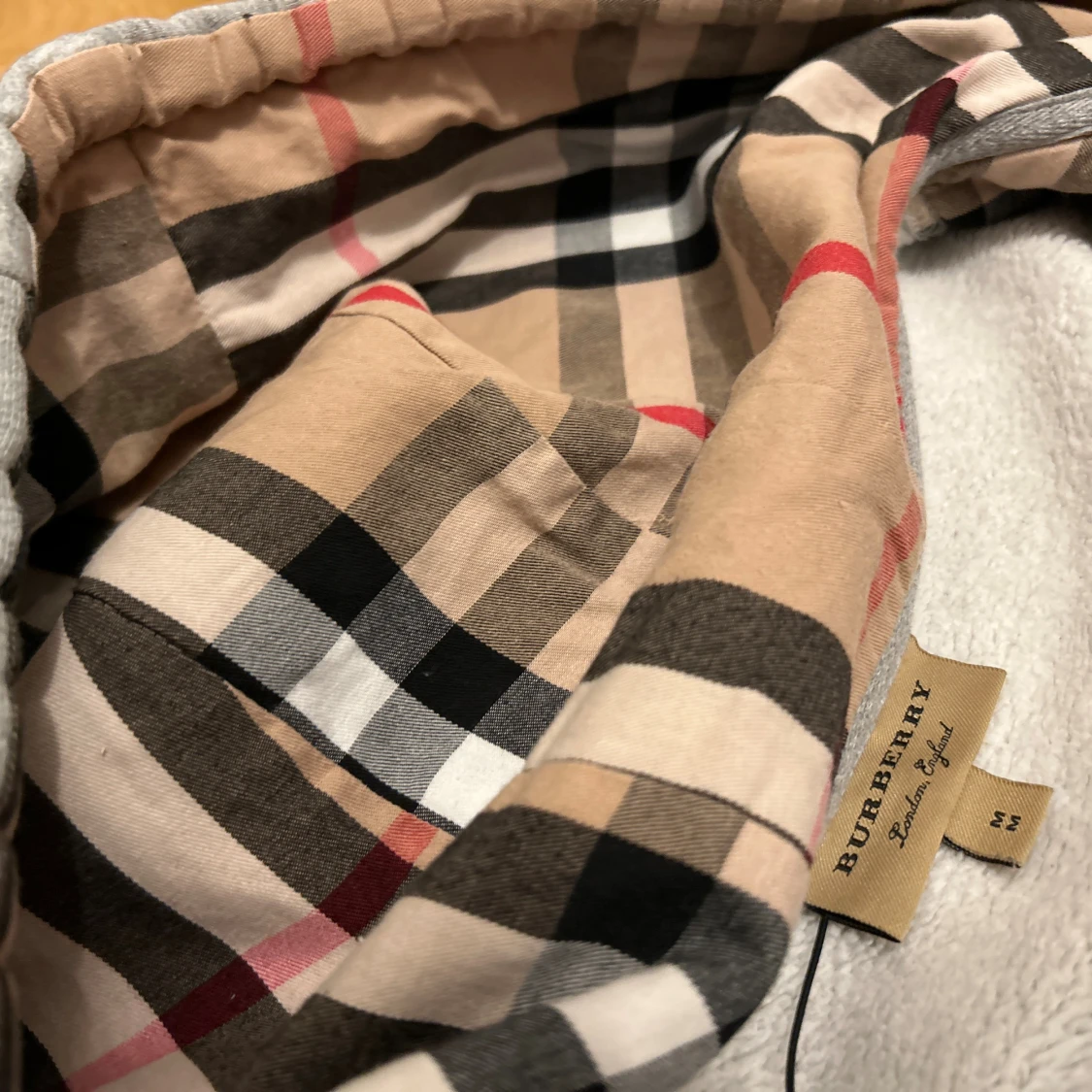 Snygg grå hoodie från Burberry med dragkedja och klassiskt rutigt foder i huvan. Tröjan har snörning vid huvan och ribbade muddar. Perfekt för dig som vill ha en stilren och lyxig look med ikoniska Burberry-detaljer.