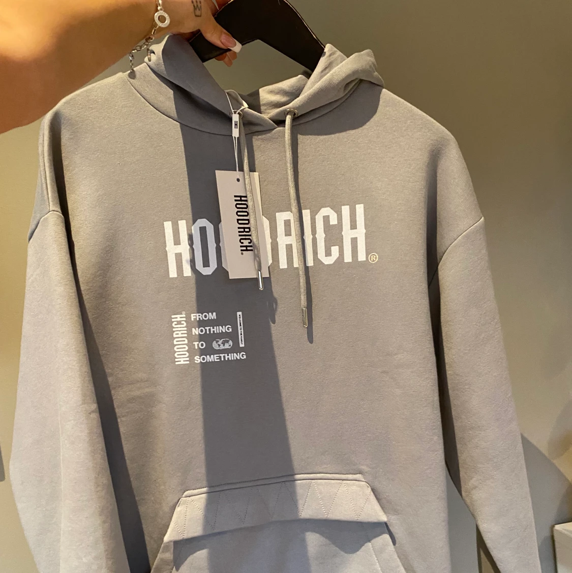 En grå hoodrich hoodie i storlek S💗har ej använts, prislappen är kvar❤️köptes på JD sports! De är en herr modell men funkar hur bra som helst för tjejer💗😚