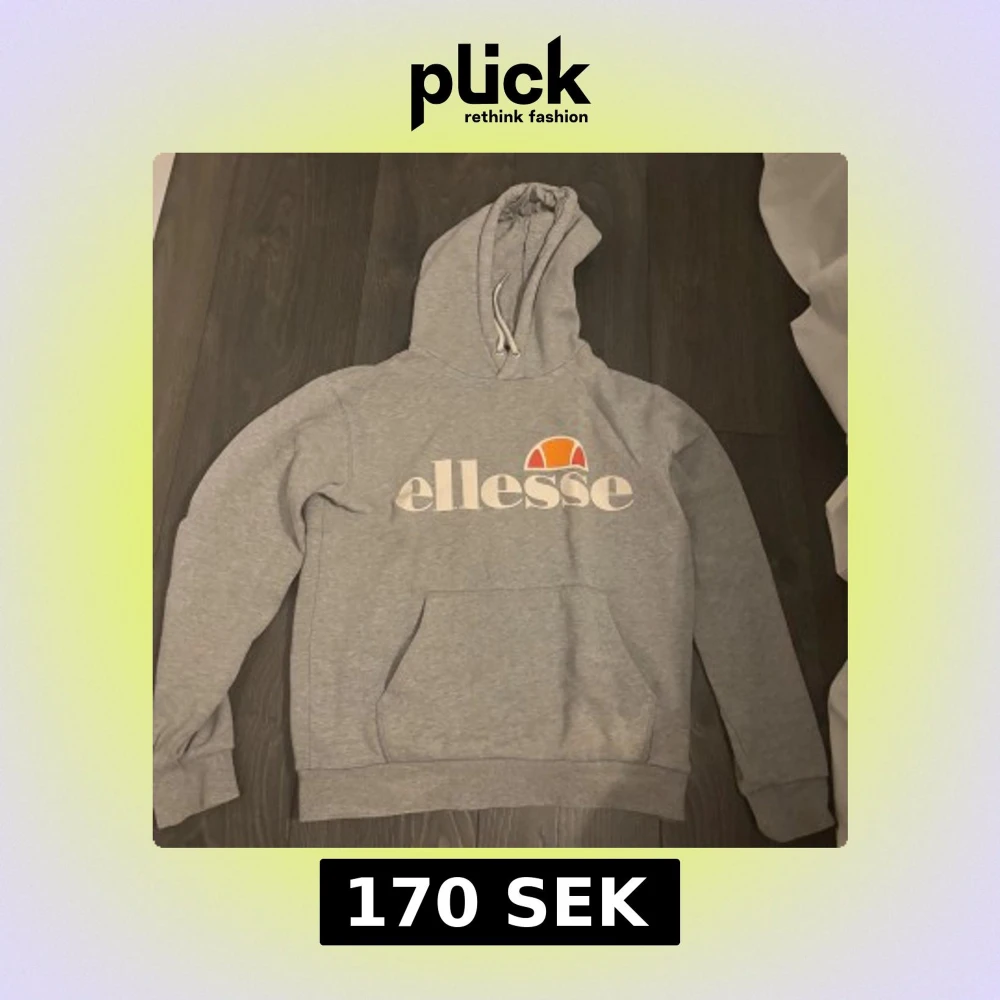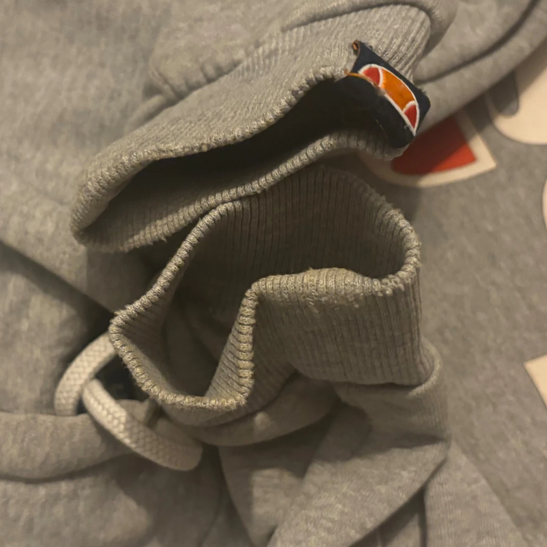 Grå hoodie från Ellesse med stor vit och orange logga framtill. Tröjan har huva med snörning, magficka och ribbade muddar vid ärmslut och nederkant. Perfekt för chill dagar och streetstyle. Det finns tecken på att den är använd som man ser på sista bilden, men för övrigt väldigt fin💞