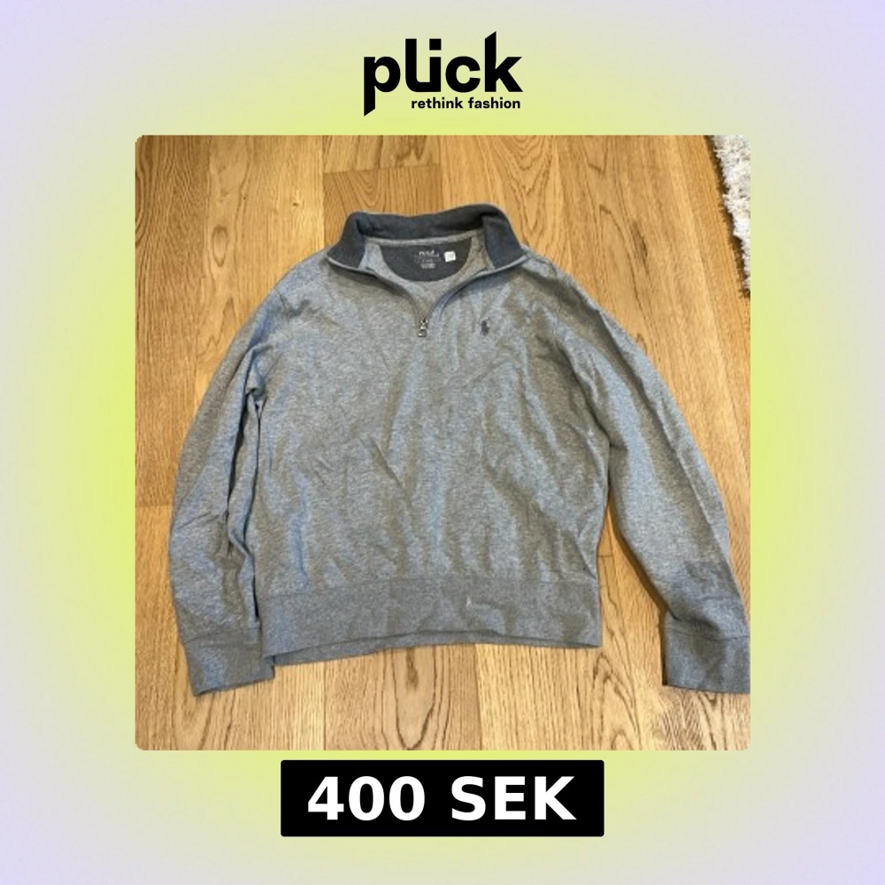 Säljer en stilren grå halvzip tröja från Polo Ralph Lauren. Tröjan har hög krage, dragkedja vid halsen och diskret broderad logga på bröstet. Perfekt för en avslappnad men snygg look.