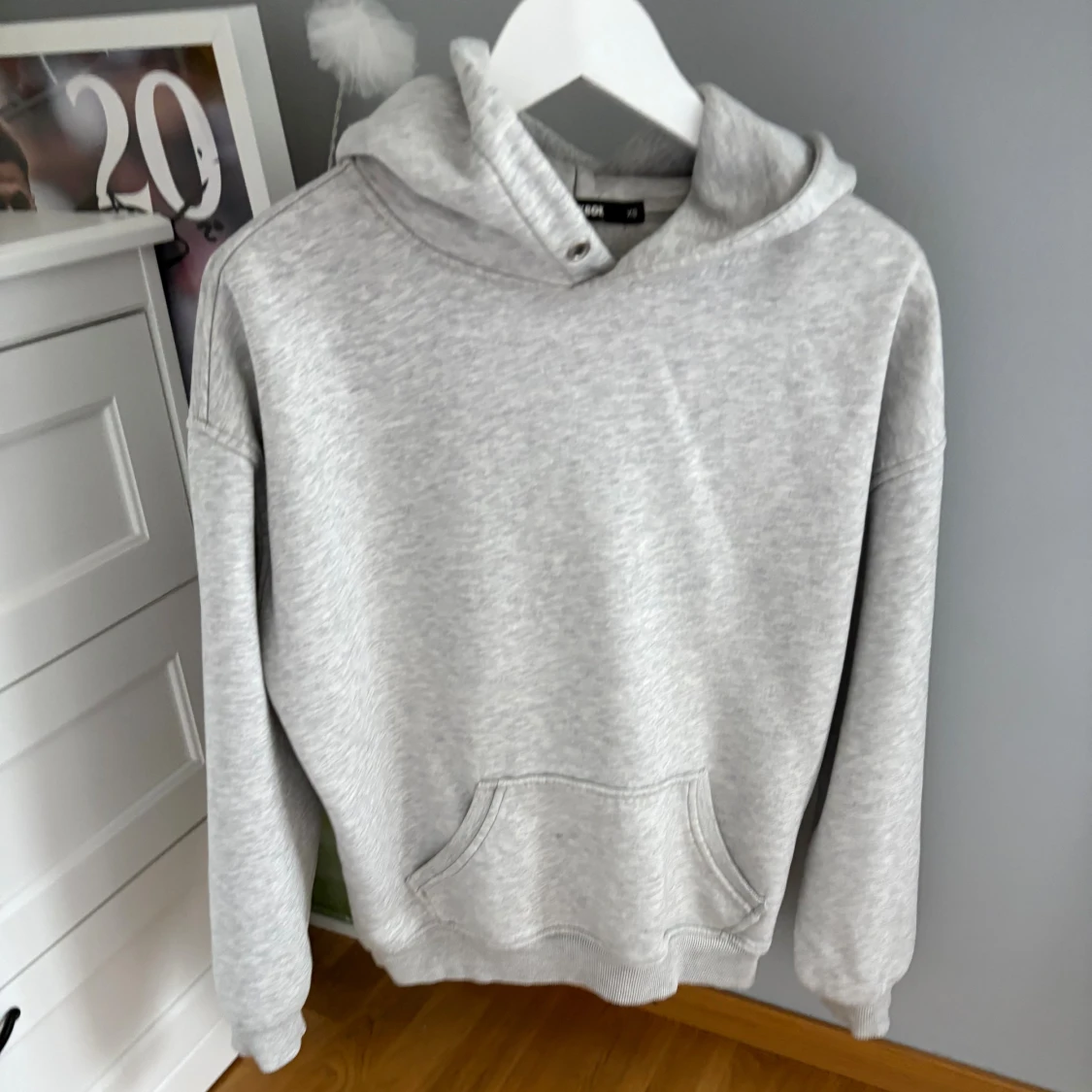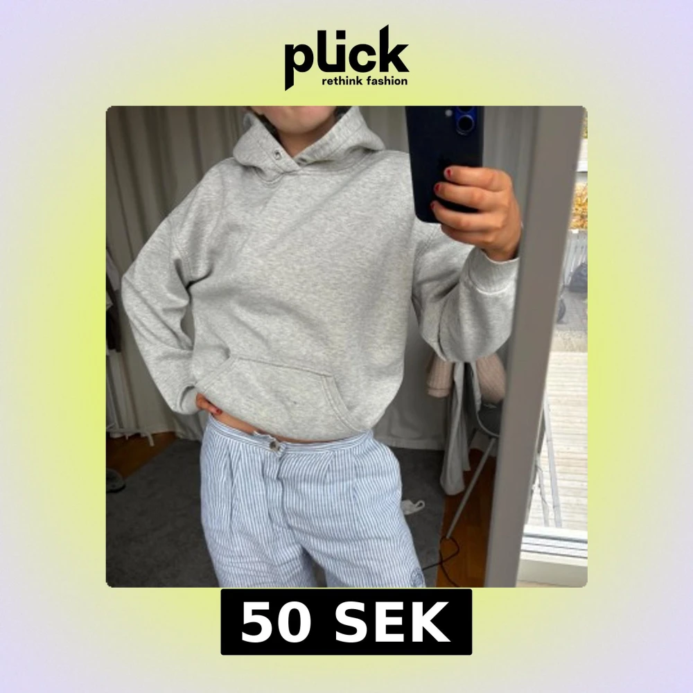 Grå hoodie från Bilbok. Lite sliten men ändå i bra skick.