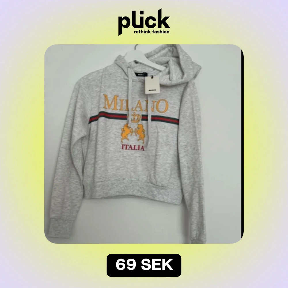 Ljusgrå hoodie från bikbok. Oanvänd och i bra skick! Text från hoodien: milano italia