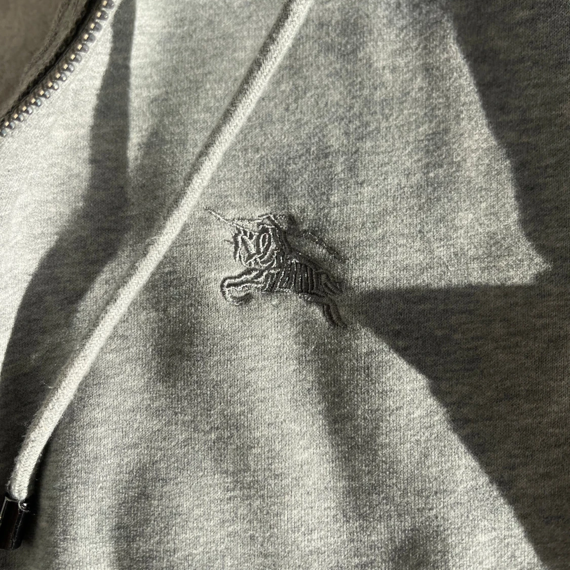 Grå burberry zip hoodie, köpt på vinted. Väldigt dålig kvalitet ifall att den är äkta eftersom att ena fickan är mycket större. Perfekt för att layering dock och e as snygg bara man inte ser fickorna. Sitter som M