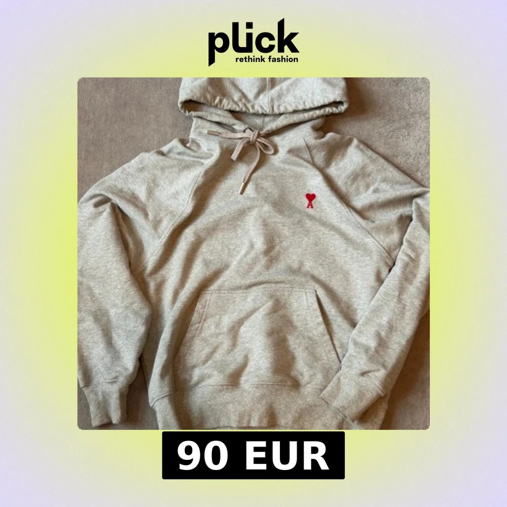 Nice hoodie from ami paris. Its in good condition only problem is that the wrist part on both hands opened a little but that can be easily fixed. Bought from vinted a while a go so im not sure about the authenticity.