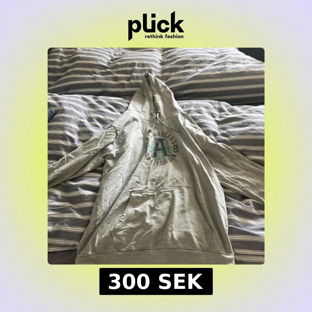 Säljer en grå hoodie från Lager 157 i storlek XL. Tröjan har tryck med texten 'Los Angeles California Champs' och stora bokstaven A på bröstet. Klassisk känguruficka framtill och huva. Perfekt för en avslappnad stil.
