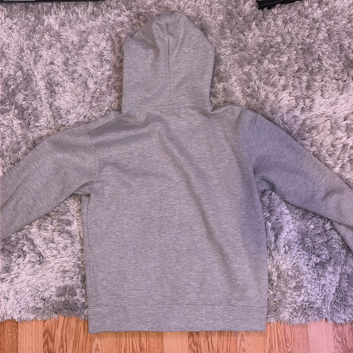 Snygg grå hoodie från Polo Ralph Lauren med dragkedja framtill och klassisk svart logga på bröstet. Tröjan har huva, två fickor och är tillverkad i mjuk bomull. Perfekt för en chill och stilren look. Har två mörka fläckar på framsidan, osäker om dem tvättas ut elr inte. Mvh