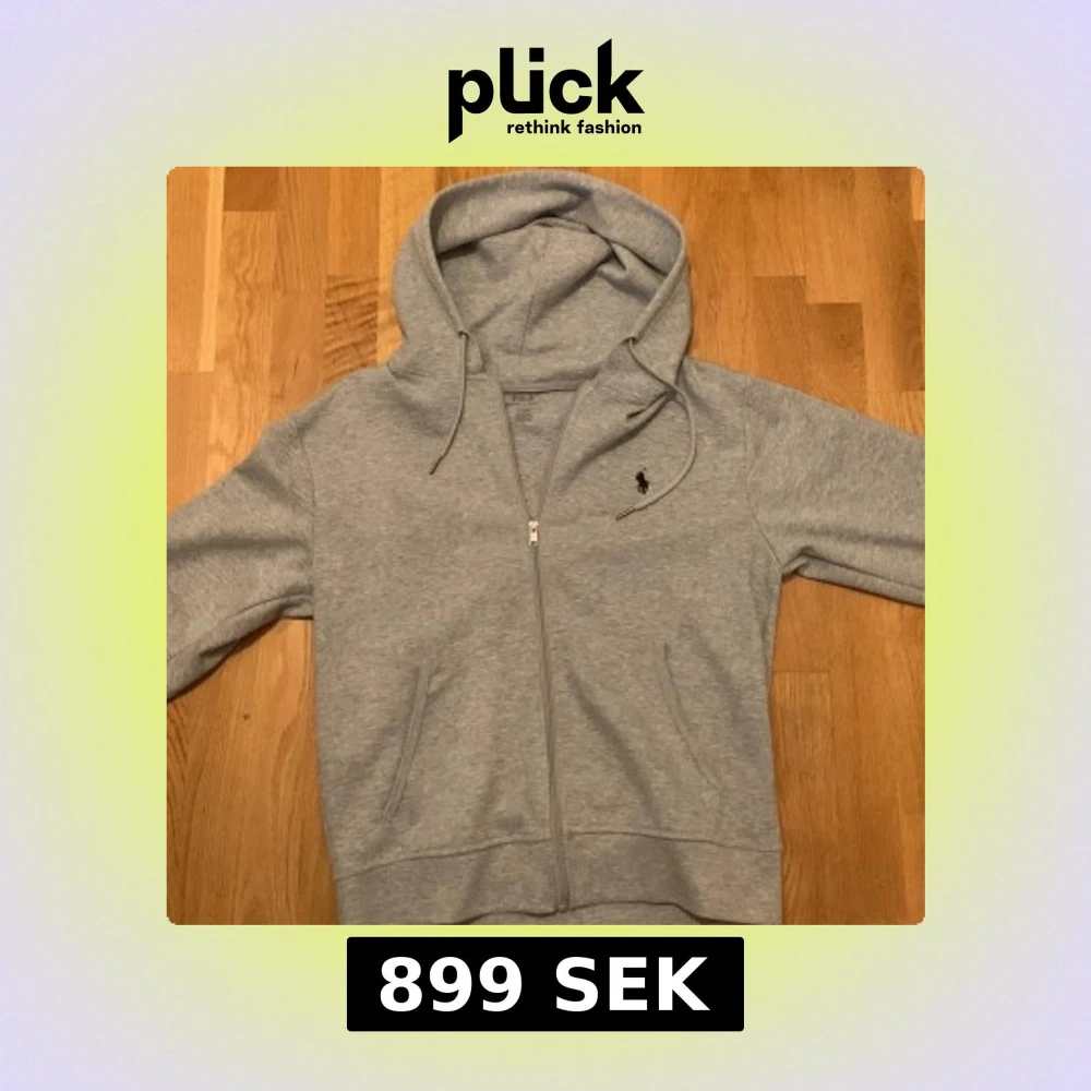 Grå hoodie från Polo Ralph Lauren med dragkedja och huva med snörning. Helt oanvänd. Klassisk svart logga broderad på bröstet. Mjuk bomullsmix, två fickor fram och ribbade muddar. Perfekt för chill dagar och enkel att matcha med jeans eller joggers.