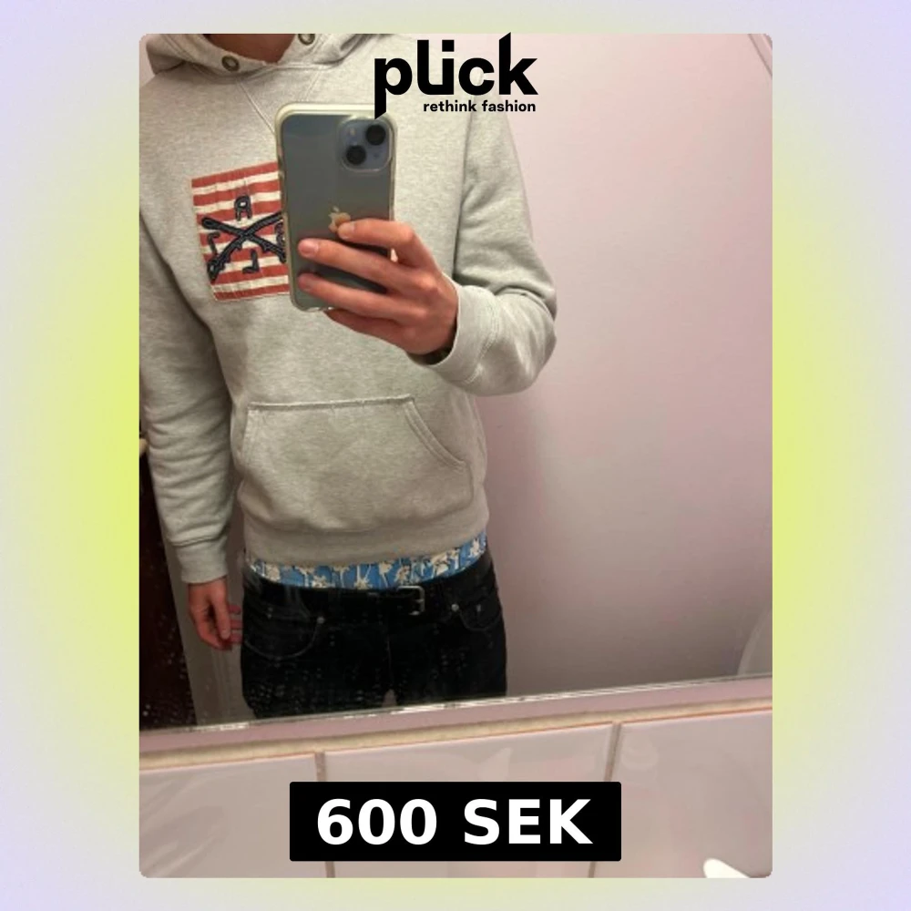 En grå hoodie från Ralph Lauren. Bra men använt skick. Saknar snören och är lite sliten kring kragen (se sista bild). Storlek S. Hör av er ifall ni har några frågor!