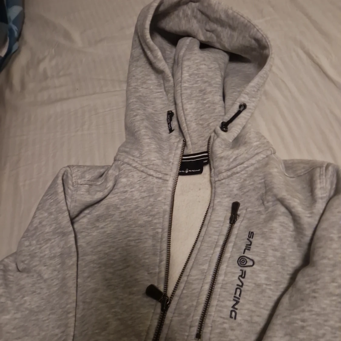 Säljer en snygg och bekväm grå hoodie från Sail Racing. Den har en dragkedja framtill och en justerbar huva. Perfekt för både vardag och chill. Den är i bra skick och supermjuk!