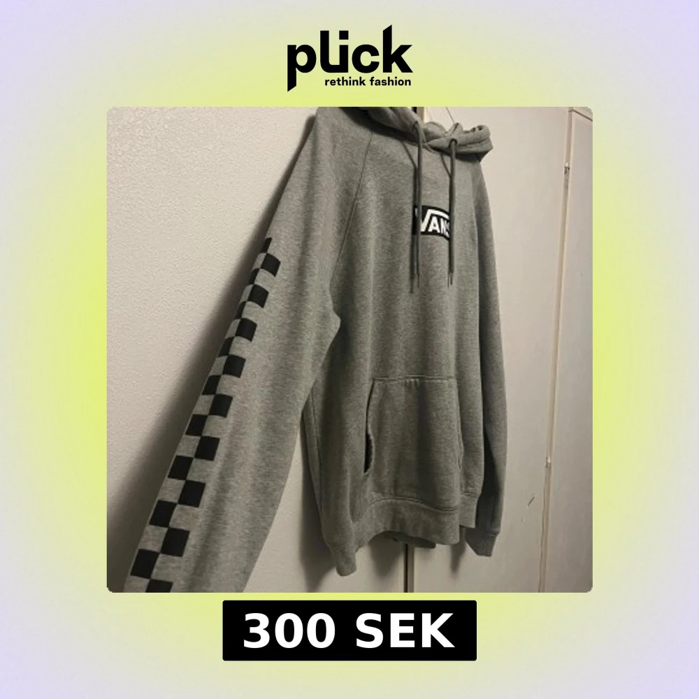 Säljer en snygg grå hoodie från Vans i storlek small. Den har en klassisk logga på bröstet och fina rutiga detaljer på ärmen. Väldigt skön och behagligt hoodie som tyvärr inte kommer till användning. Superbekväm och i bra skick!