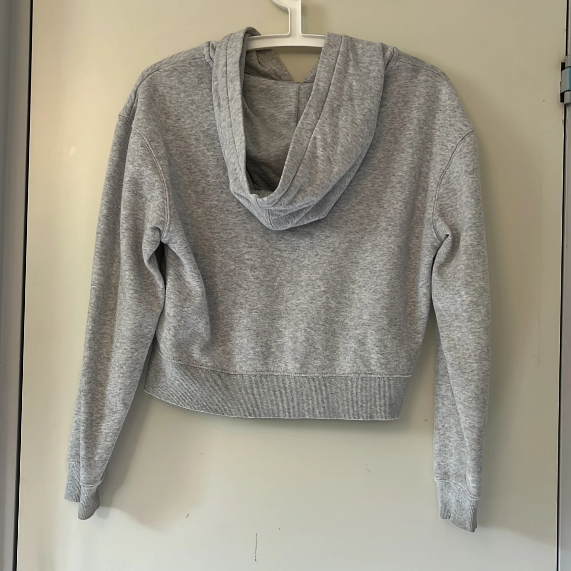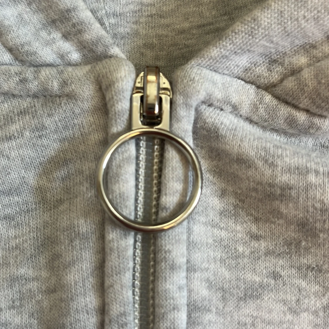 Gråmelerad hoodie från H&M i ekologisk bomull. Tröjan har huva, hel dragkedja framtill med rund metallring och ribbade muddar. Enkel och stilren modell som passar perfekt till chill dagar. Croppad passform och lång ärm.