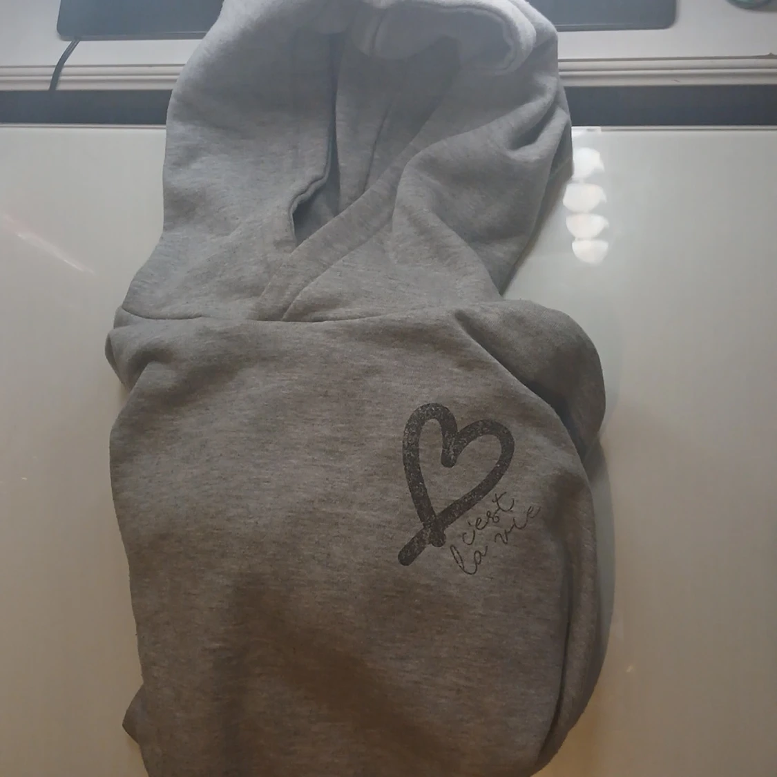 Mysig grå hoodie från Unic Studio med stort svart hjärta och texten 'c'est la vie' på bröstet. Tröjan har huva och är tillverkad i mjukt material, perfekt för chill dagar. Enkel och stilren design som passar till det mesta.