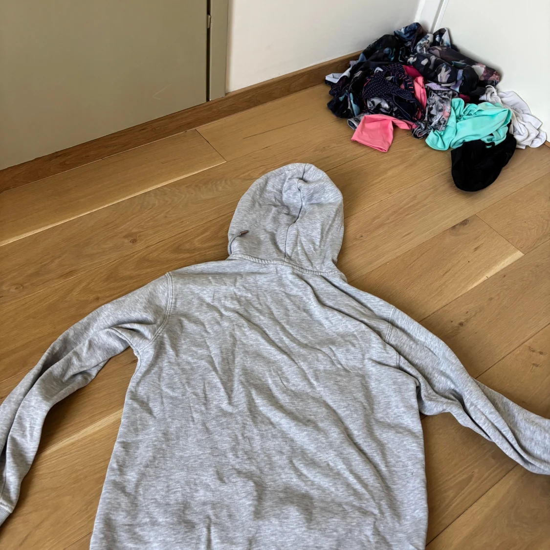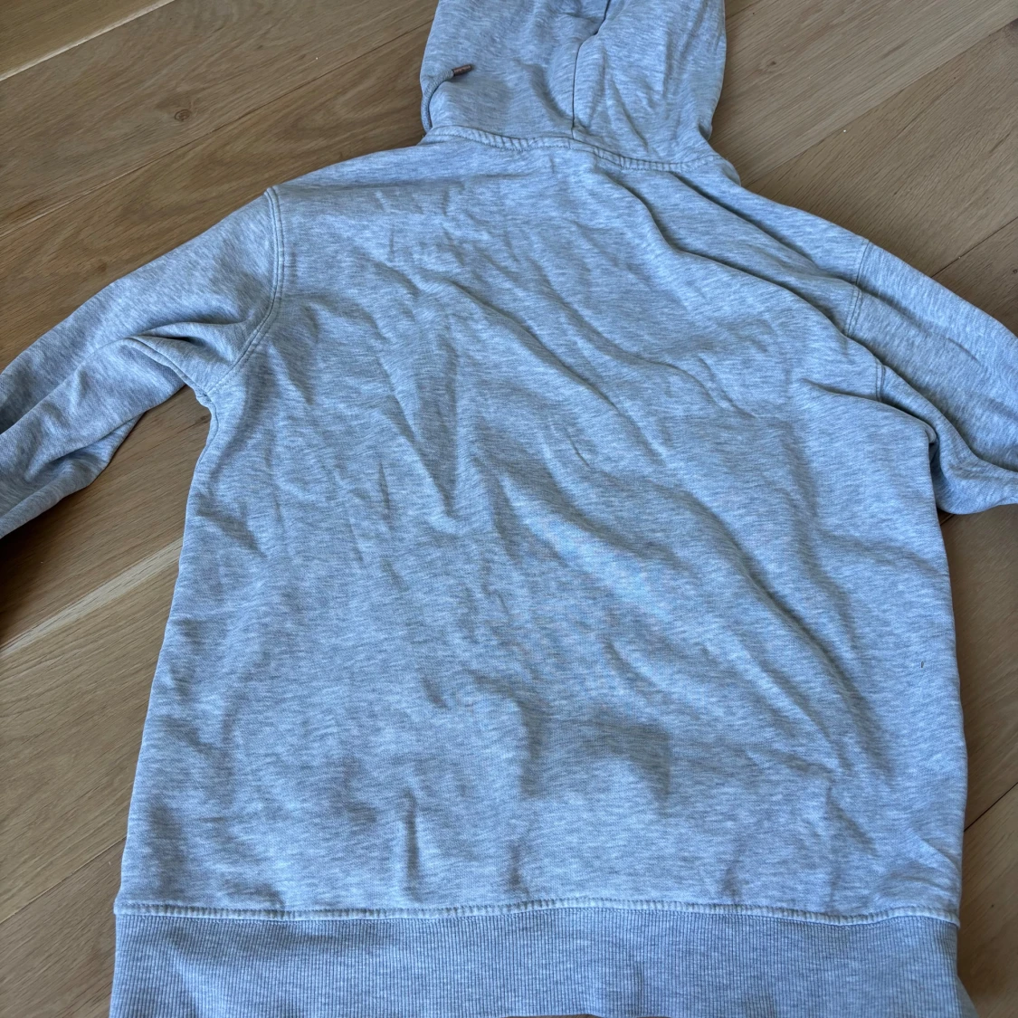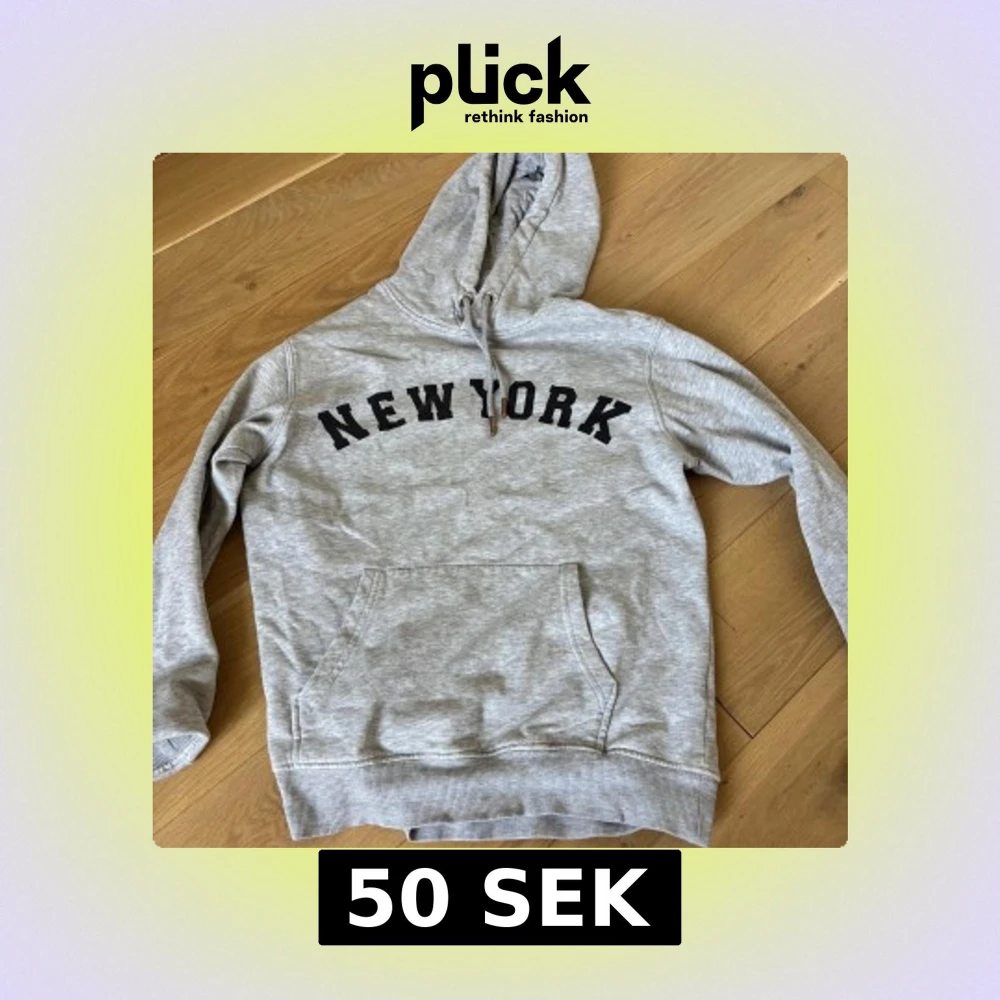 Snygg grå hoodie med svart 'NEW YORK'-text över bröstet. Tröjan har huva med snörning, magficka och ribbade muddar. Perfekt för chill dagar eller när du vill ha en avslappnad streetstyle-look.