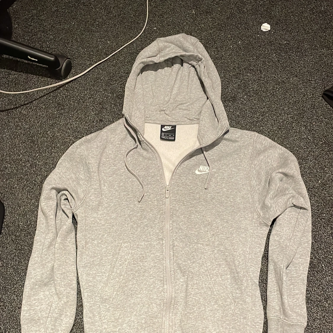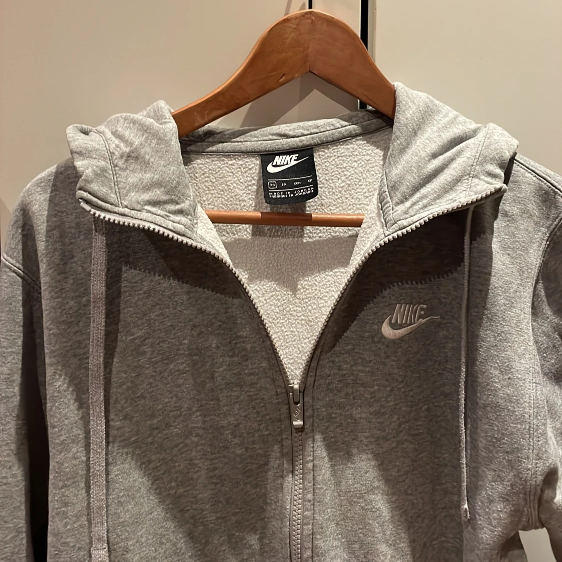 Säljer grå nike hoodie som har blivit för liten. Storlek xs