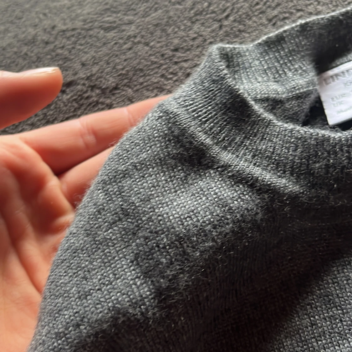 En enkel och stilren grå stickad tröja. Tröjan har rund halsringning, långa ärmar och ribbade muddar. Perfekt för lager-på-lager och funkar till både jeans och chinos. Materialet är mjukt och skönt, vilket gör den nice för kyligare dagar.