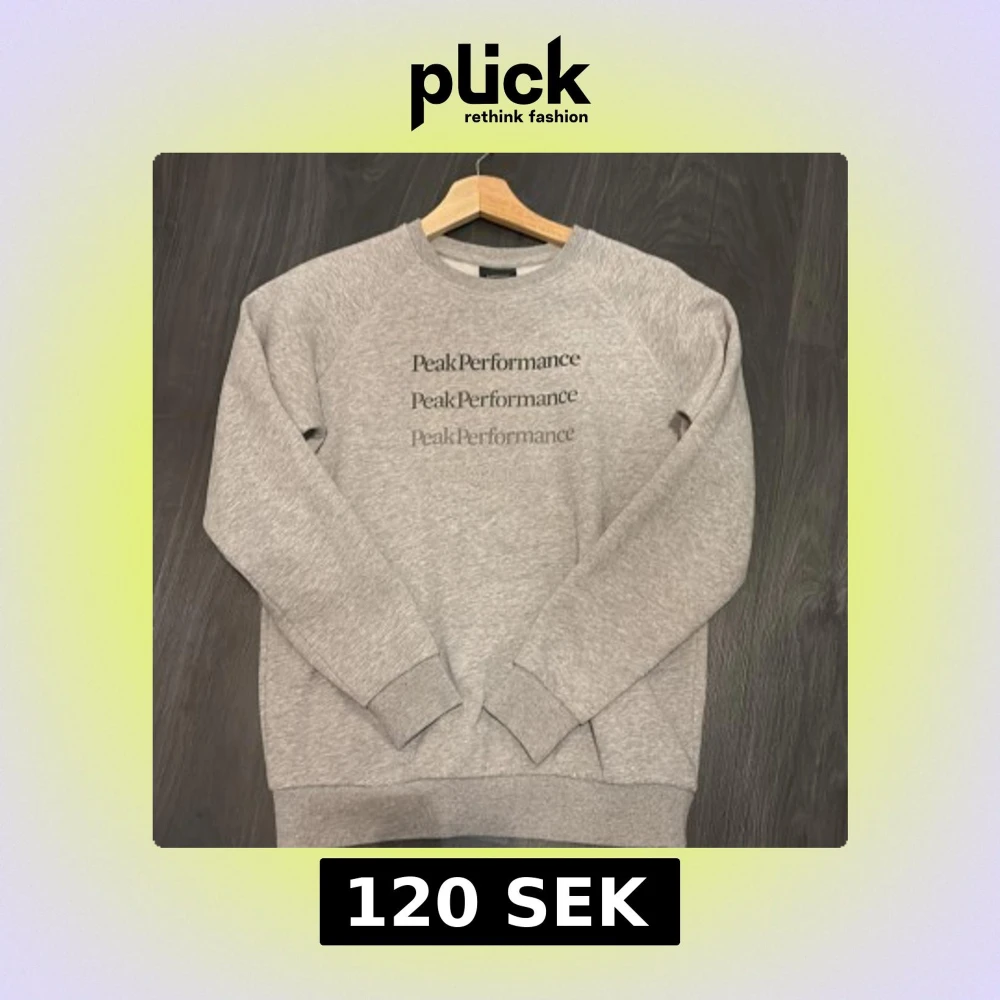 Säljer en stilren grå sweatshirt från Peak Performance med tryck i olika nyanser framtill. Tröjan har rund halsringning och långa ärmar med ribbade muddar. Knappt använd och den ser ut som om den vore ny