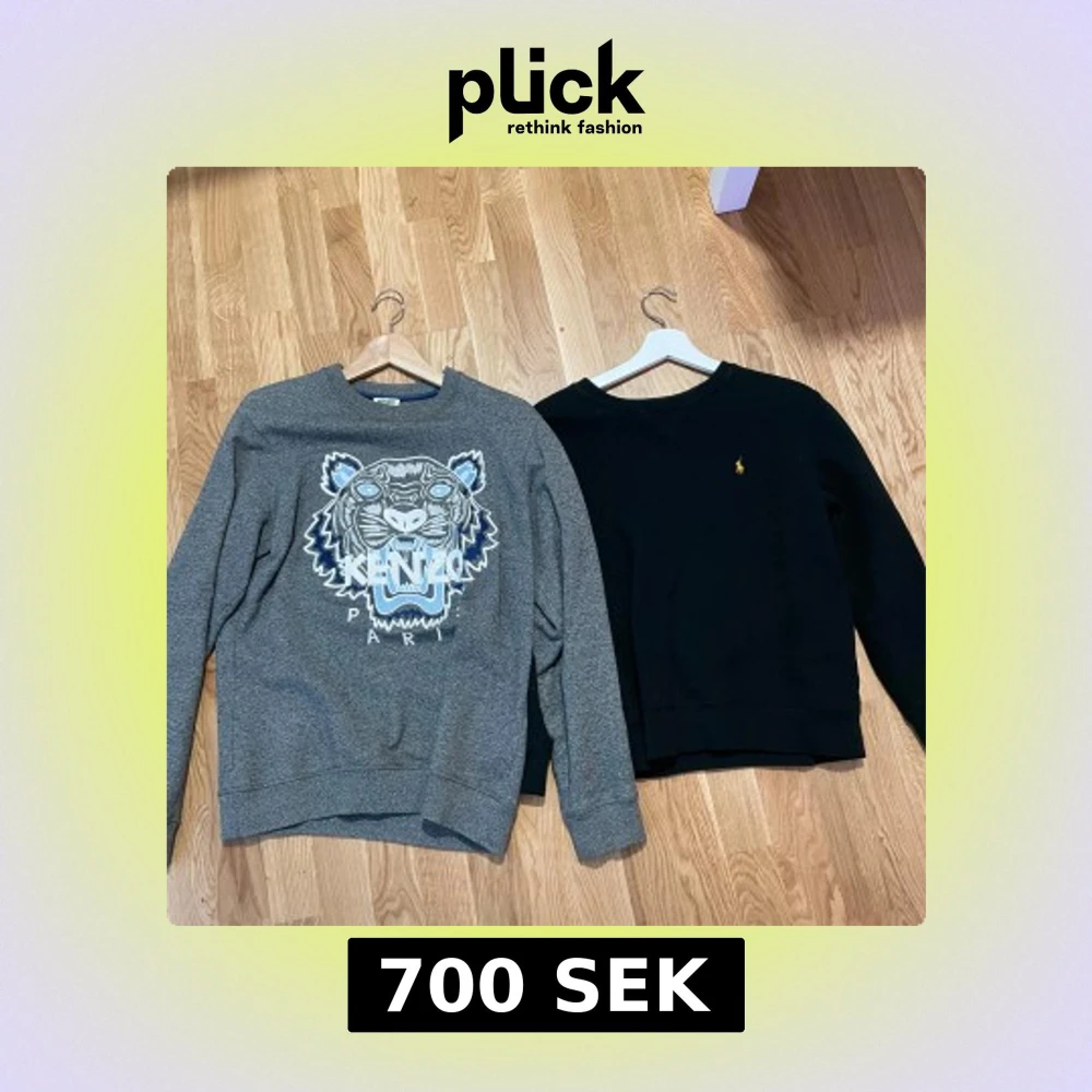 Säljer en grå sweatshirt från Kenzo (XS Herr) och en Ralph Lauren sweatshirt svart (156cm junior) båda i nyskick, skickas snabbt med spårbart paket via PostNord 📦