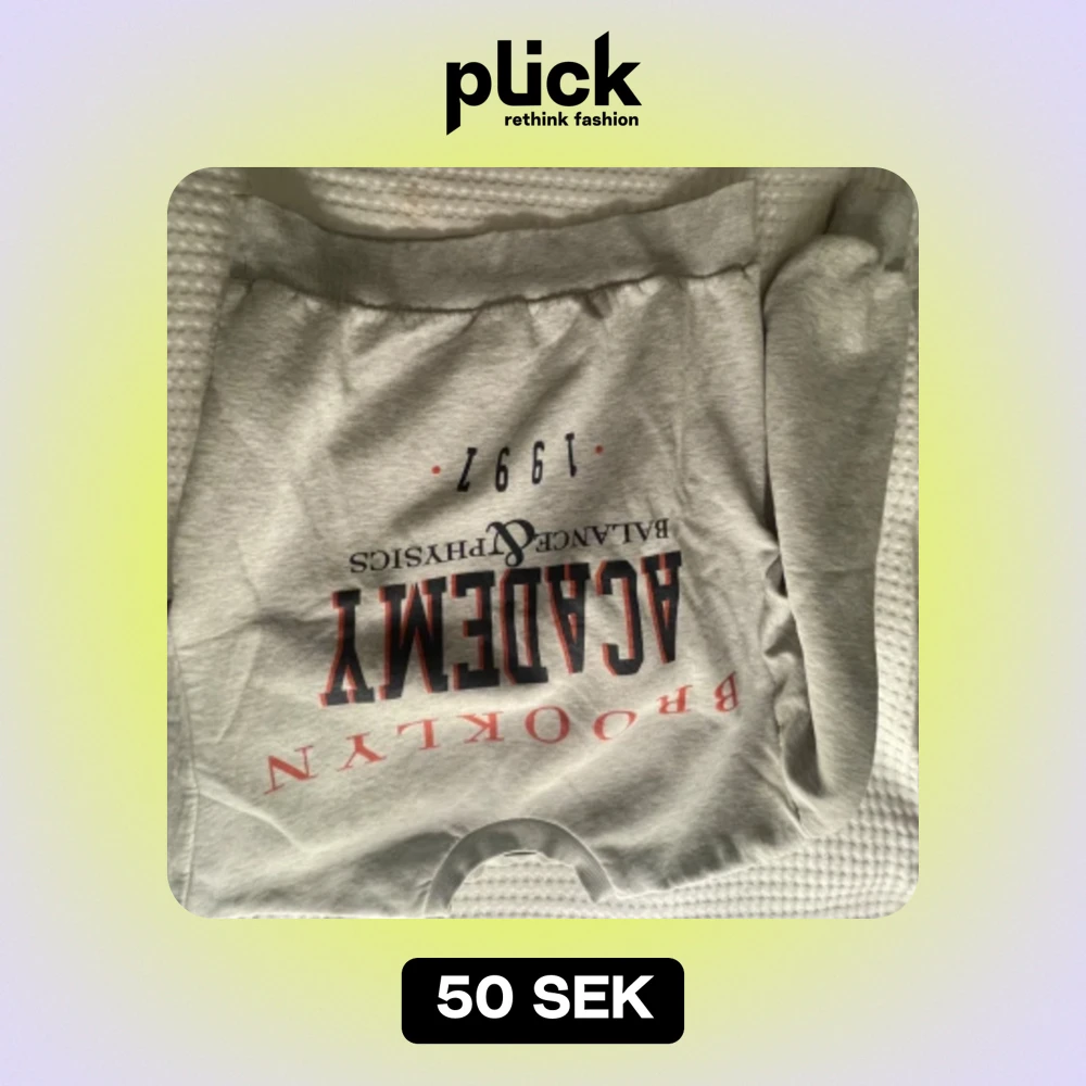 Grå sweet shirt med ett orange/mörk blå text över magen och bröstet