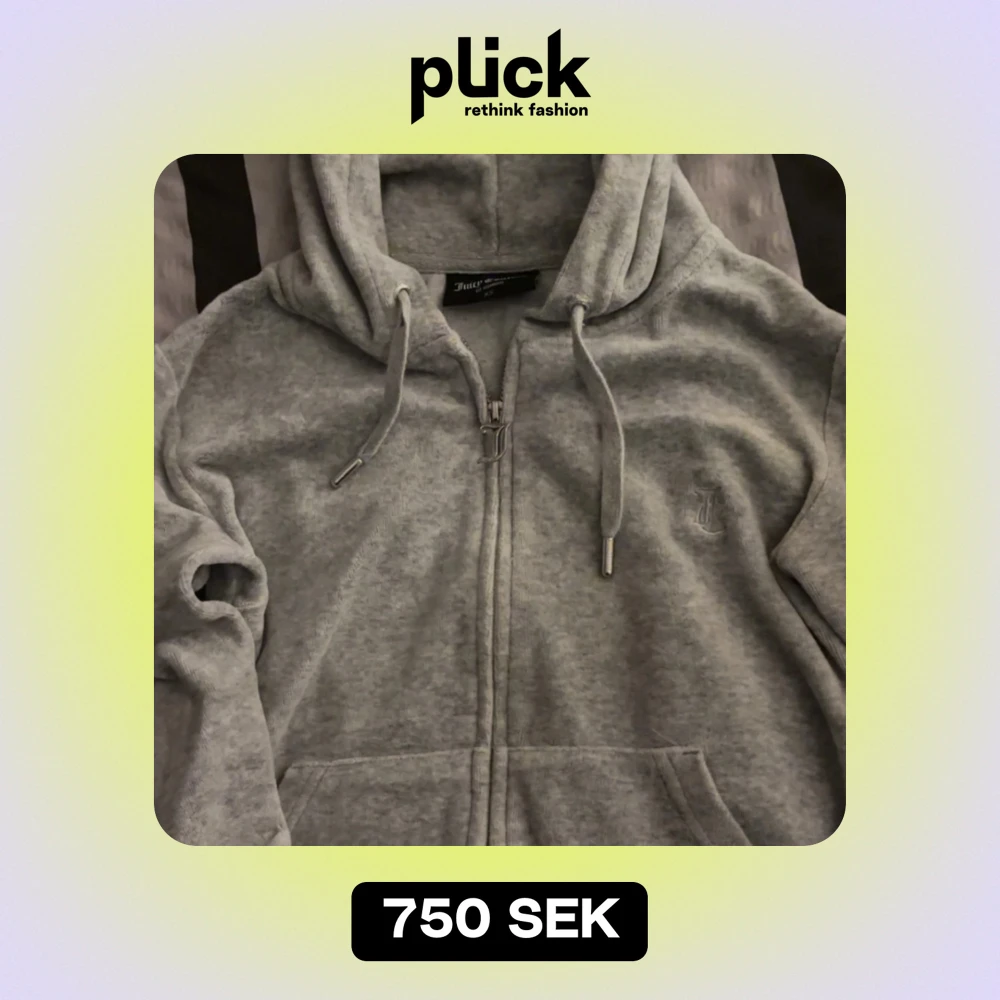Mysig grå velour zip up hoodie från Juicy Couture i storlek XS. Den har en dragkedja med ett snyggt J-hänge och justerbara snören i huvan. Perfekt för en avslappnad stil eller mysiga dagar hemma. 💖 Nypris: 1300kr, jätte bra skick. Säljer för 750kr men pris kan diskuteras