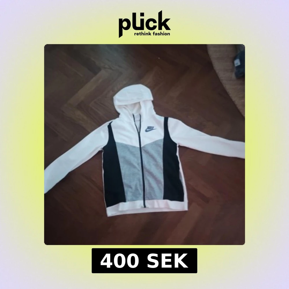 Säljer en snygg vit och grå hoodie från Nike med svarta detaljer. Säljer den för den är för liten för mig och den är i bra skick