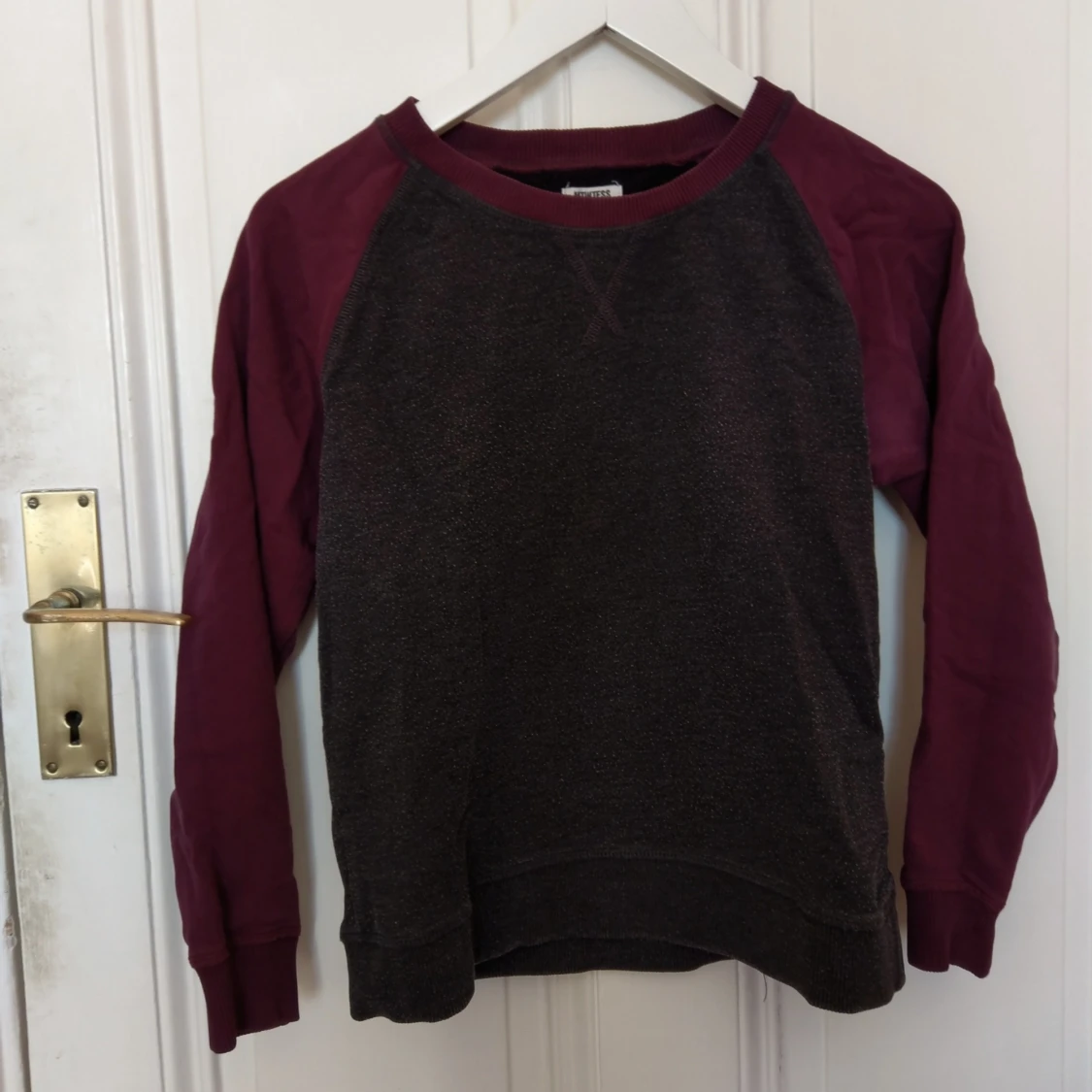 Mörkgrå och vinröd tröja från Weekday i storlek S. Flitigt använd av mig men fortfarande i jättefint skick! Skulle säga att den vinröda färgen är lite dovare i verkligheten ✨ 74% bomull, 26% polyester