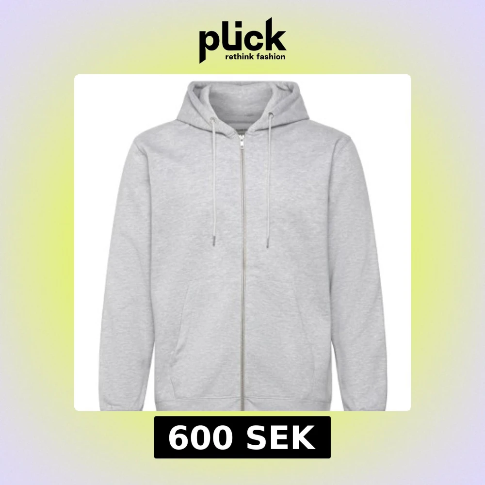 Snygg ljusgrå hoodie med hel dragkedja och huva. Tröjan har snörning i huvan och två praktiska fickor framtill. Perfekt för chill dagar och enkel att matcha med jeans eller joggers. tröjan har aldrig använts och har prislappen kvar. nypris 899kr