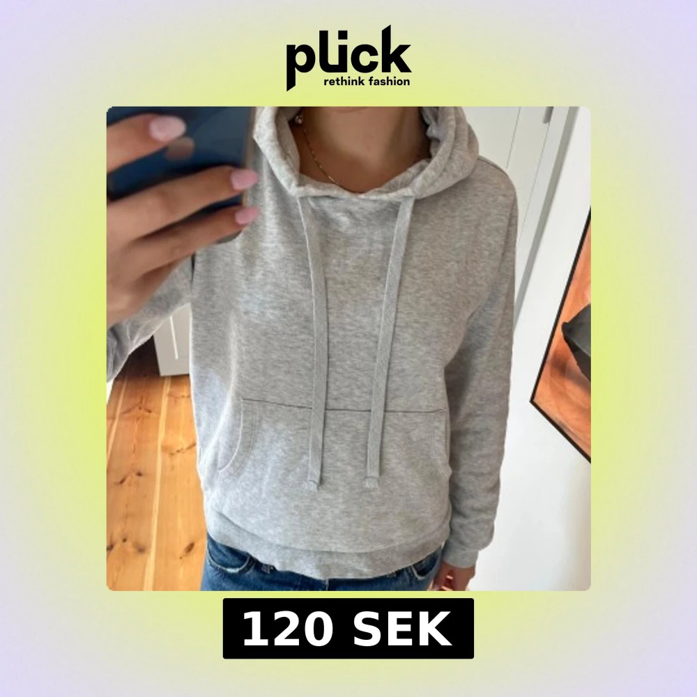 En basic ljusgrå hoodie med huva och dragsnören. Tröjan har en ficka framtill och ribbade muddar vid ärmslut och nederkant. Perfekt för chill dagar eller när du vill ha något bekvämt och enkelt. Står att storleken är L men tycker att den snarare sitter som M