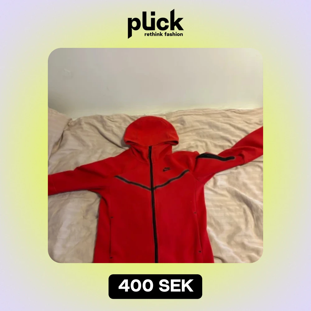 Säljer en röd nike hoodie väldigt fin och mycket bra pass form, liten skada på framsidan men inget som syns alls utöver de inga andra skador.