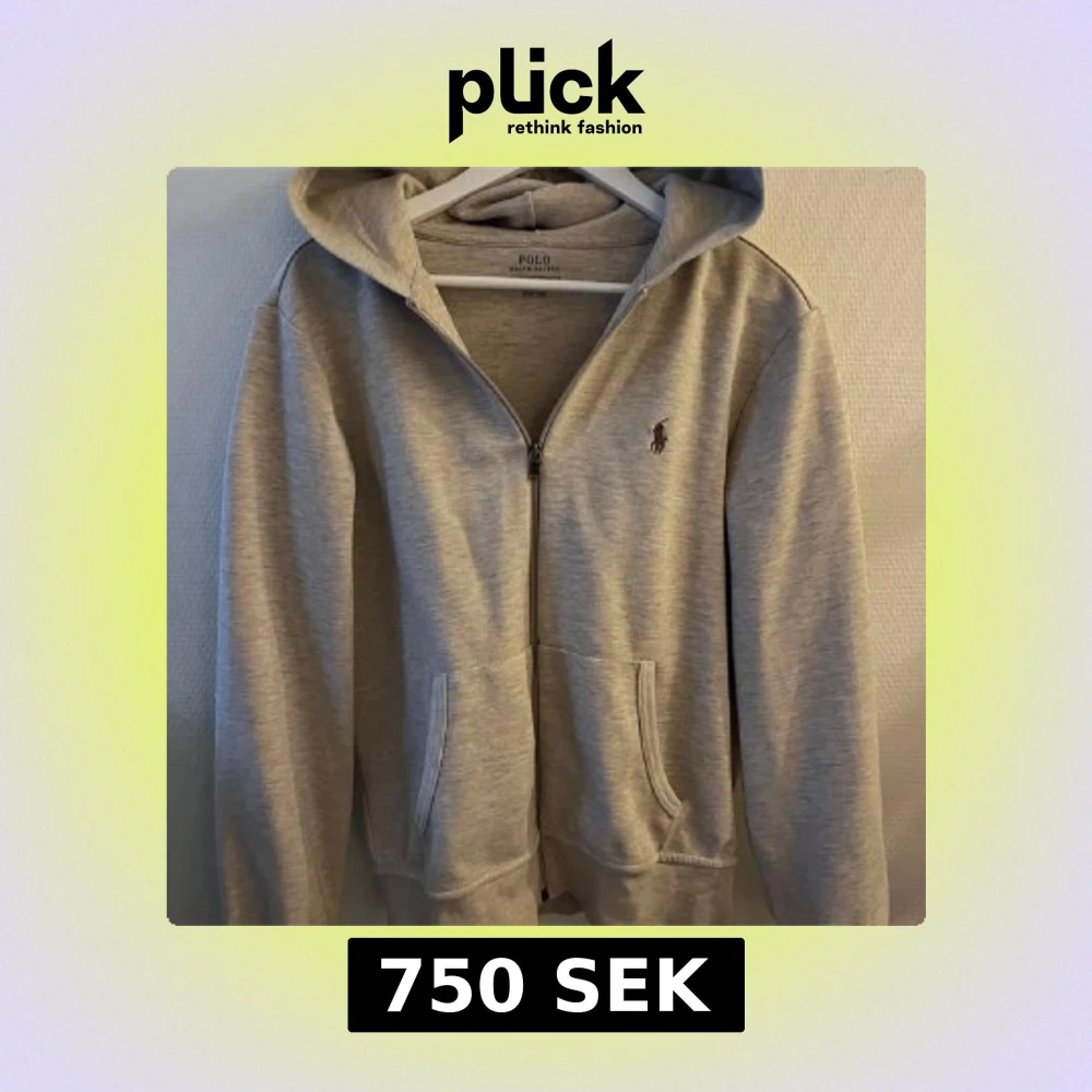 Säljer en stilren grå hoodie från Ralph Lauren med dragkedja och klassisk logga på bröstet. Perfekt för en avslappnad look. Den har en bekväm passform och praktiska fickor framtill.