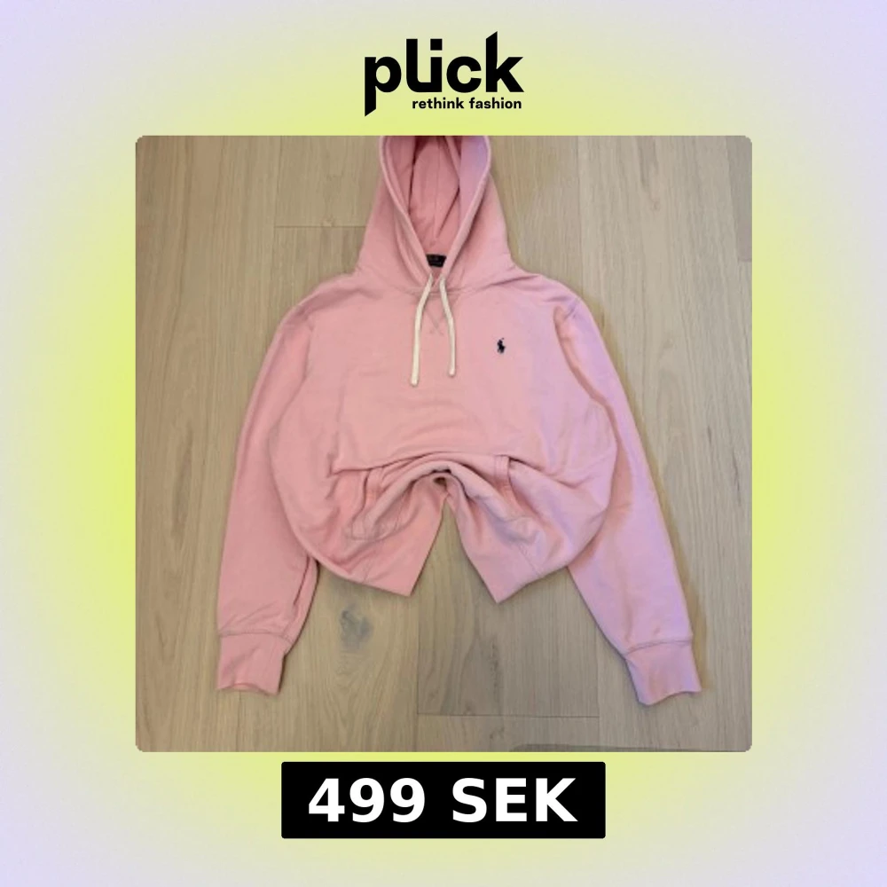 Säljer en ljusrosa hoodie från Polo Ralph Lauren med broderad logga på bröstet. Tröjan har huva med vita snören, långa ärmar och ribbade muddar. Perfekt för en chill och avslappnad stil. Den har en liten fläck! Kolla sista bilden