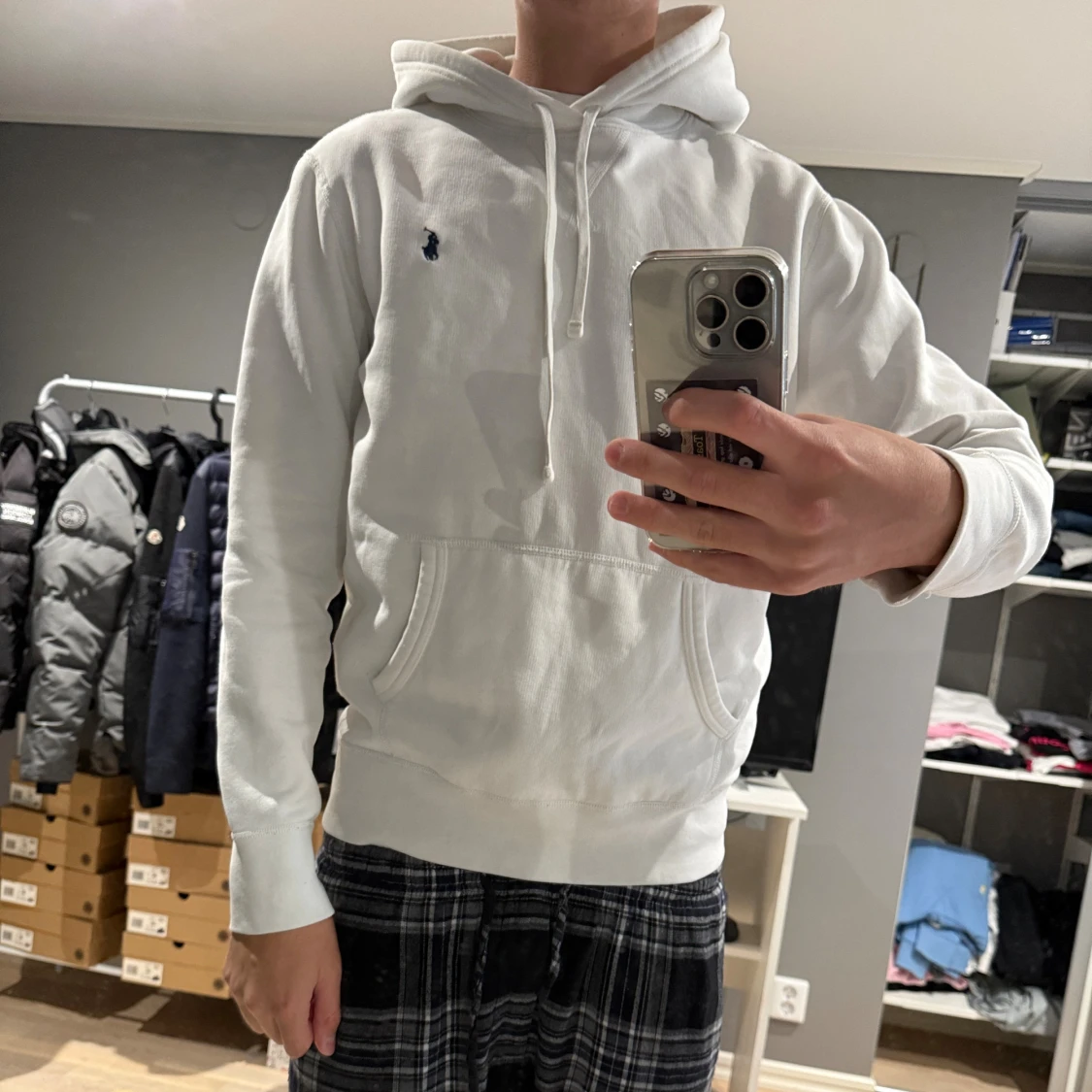 Säljer denna riktigt feta raffe Hoodien i bra skick. Enda defekten är en liten fläck som knappt syns vid användning (bild 5). Hoodien är äkta och kan bevisas med QR kod vid nacken. Pris kan diskuteras vid snabb affär!