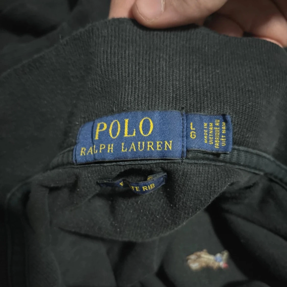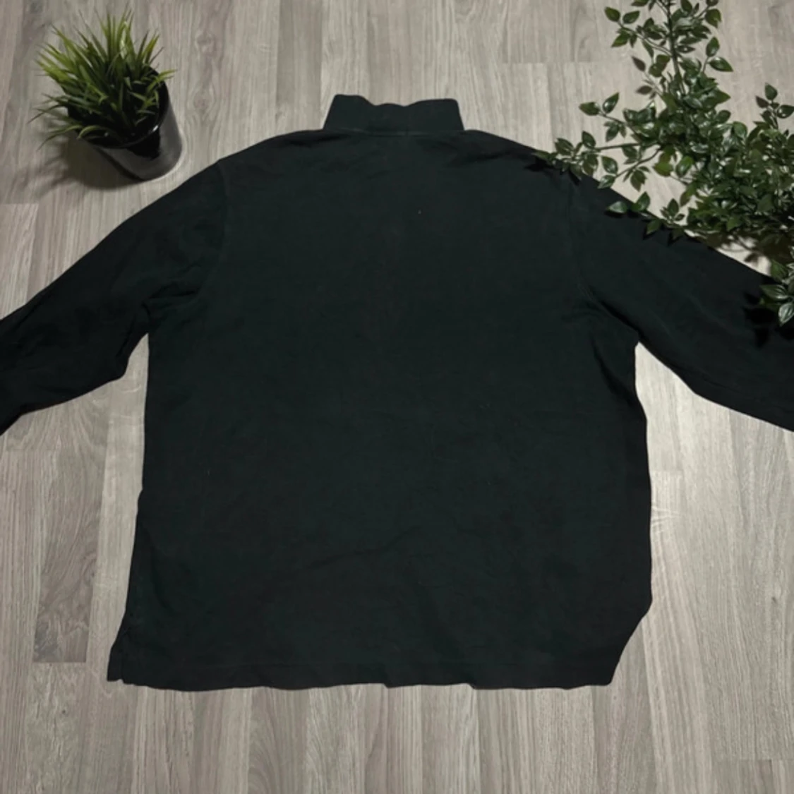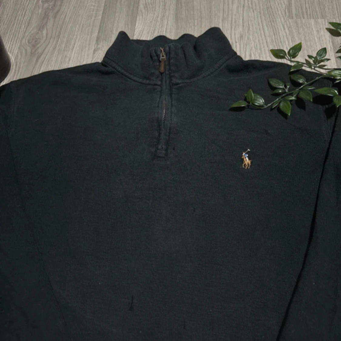 Säljer en stilren svart tröja från Ralph Lauren med halv dragkedja och broderad logga på bröstet. Tröjan är tillverkad i 100% bomull och har långa ärmar. Perfekt för en avslappnad look. Är utsliten på armbågarna och lite på fram sidan. Alla beställningar skickas inom 24 timmar!🌍📦